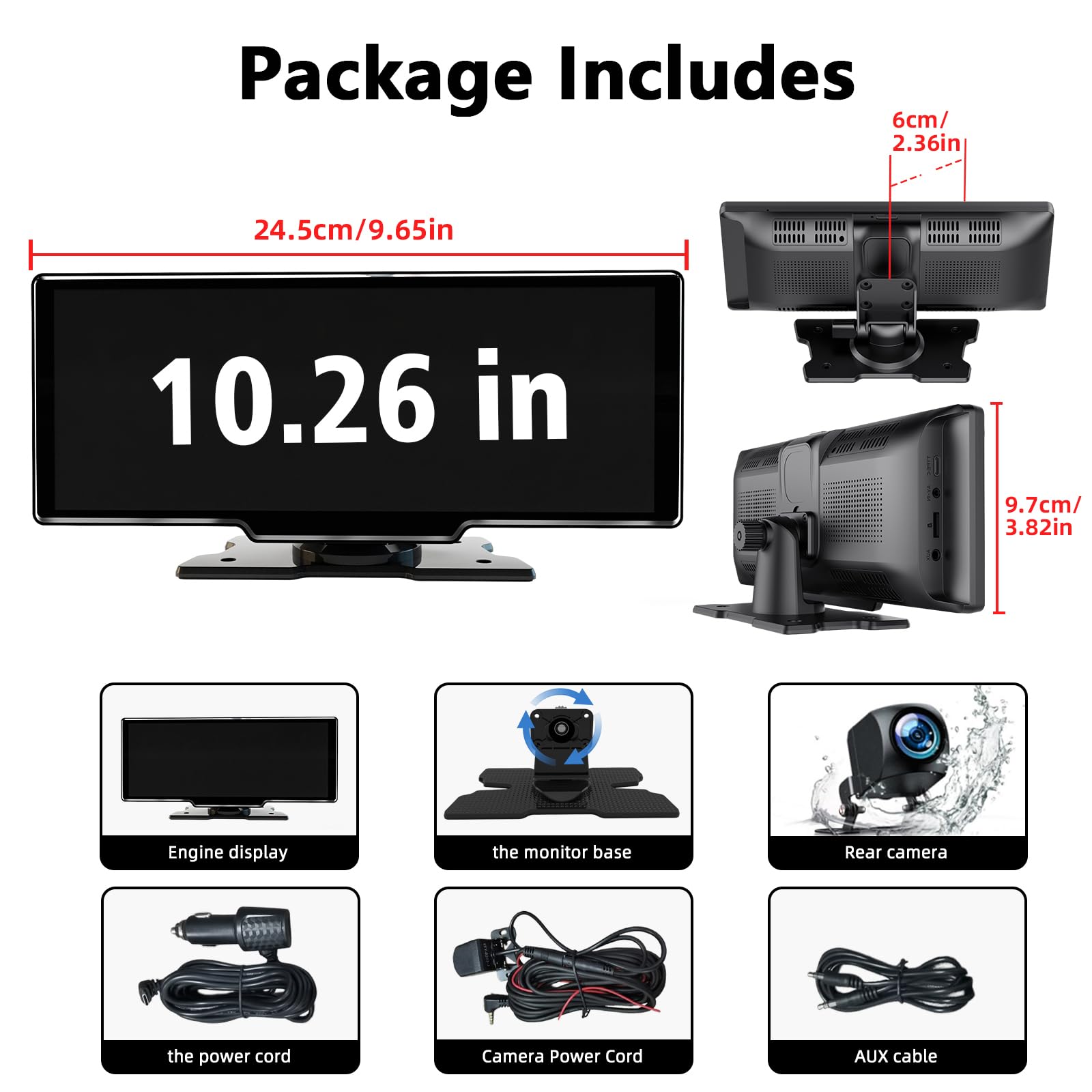 Die im Paket enthaltene 1080P HD-Rückfahrkamera sorgt für maximale Sicherheit beim Parkieren und Manövrieren. Sie bietet einen 170°-Weitwinkel zur Minimierung toter Winkel, eine leistungsstarke Nachtsichtfunktion sowie dynamische Hilfslinien. Zudem ist sie nach IP65 wasserdicht und somit bei jedem Wetter zuverlässig.