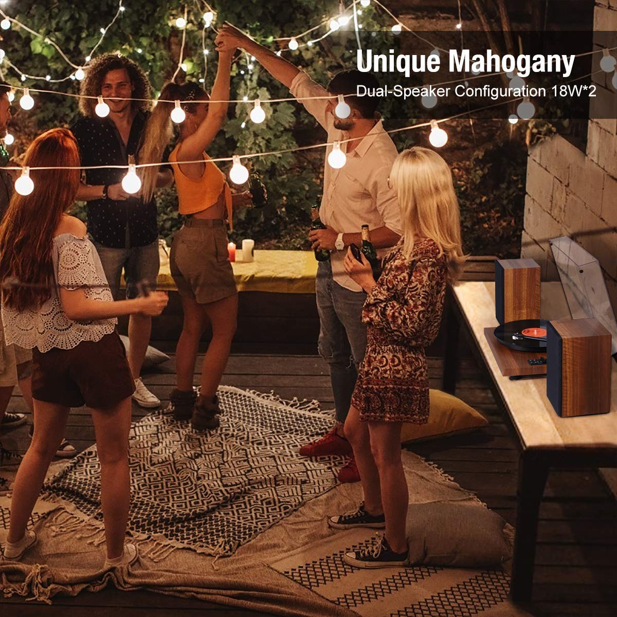 - Kabelloses Musik-Streaming: Nutzen Sie die integrierte Bluetooth-Funktion, um Musik kabellos von Ihrem Smartphone, Tablet oder Computer direkt über die mitgelieferten Lautsprecher des Plattenspielers abzuspielen.