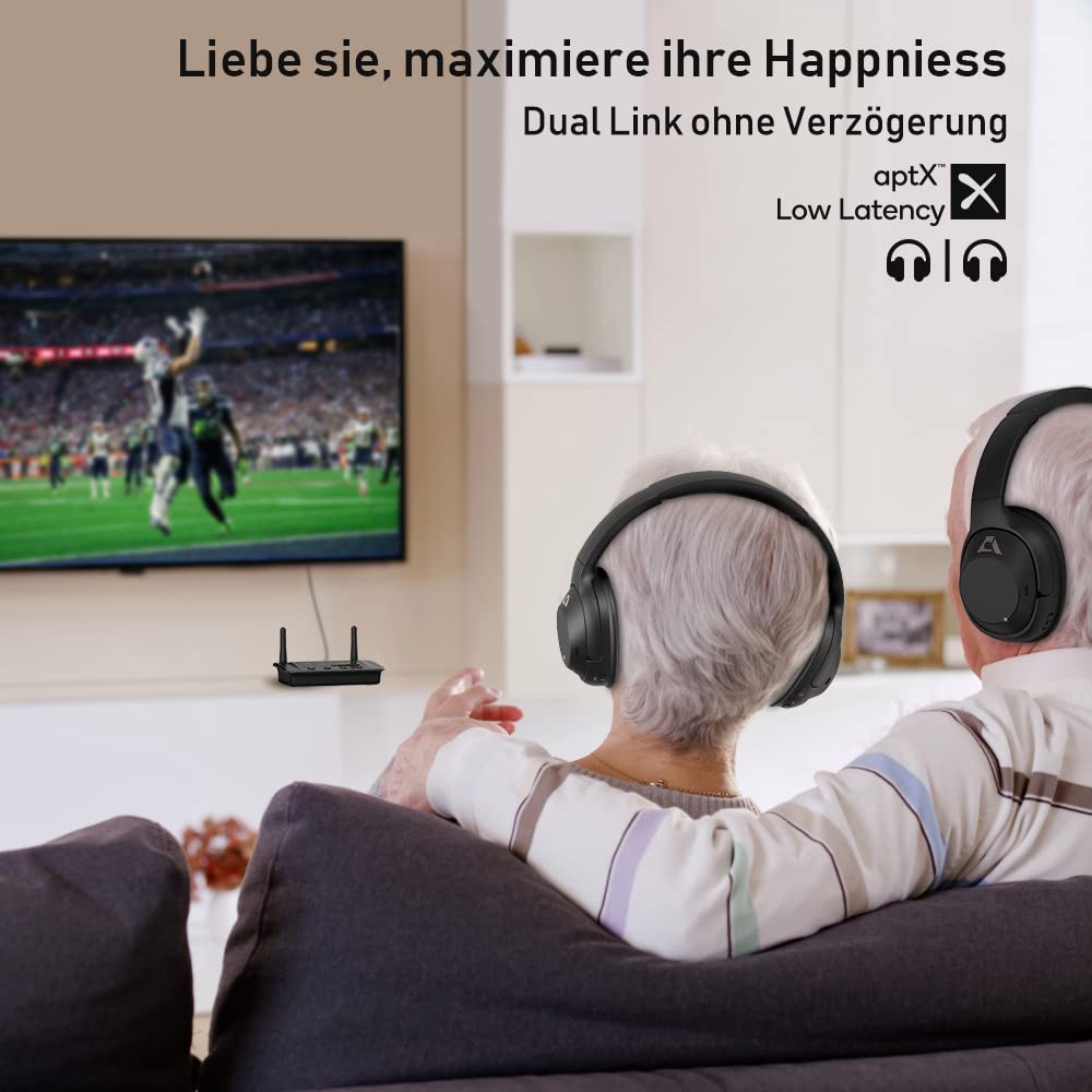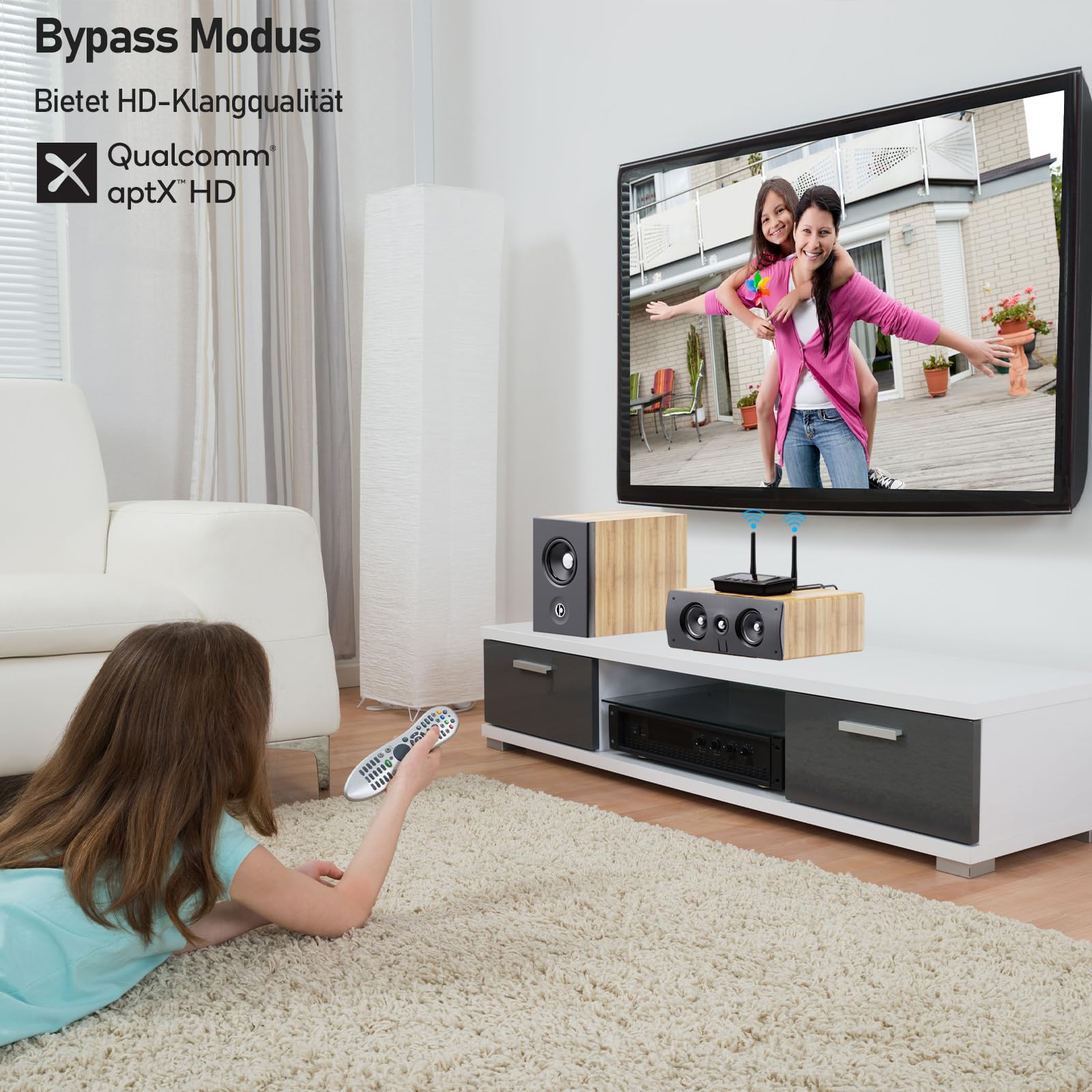 - Sender- und Empfänger-Modus: Funktion als Transmitter für TV und andere Audioquellen oder als Empfänger für Ihre Stereoanlage.