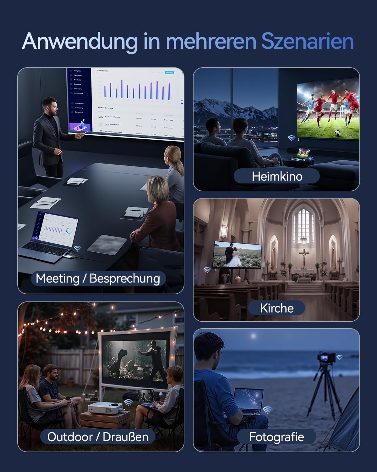 Ja, absolut. Das System nutzt die sogenannte ZeroDrop-Technologie und einen leistungsstarken 2,4G/5G-Dual-Band-Chip, um eine stabile und verzögerungsfreie Übertragung zu gewährleisten. Das macht es ideal für reaktionsschnelles Gaming, flüssiges Heimkino und ruckelfreie Geschäfts-Präsentationen.