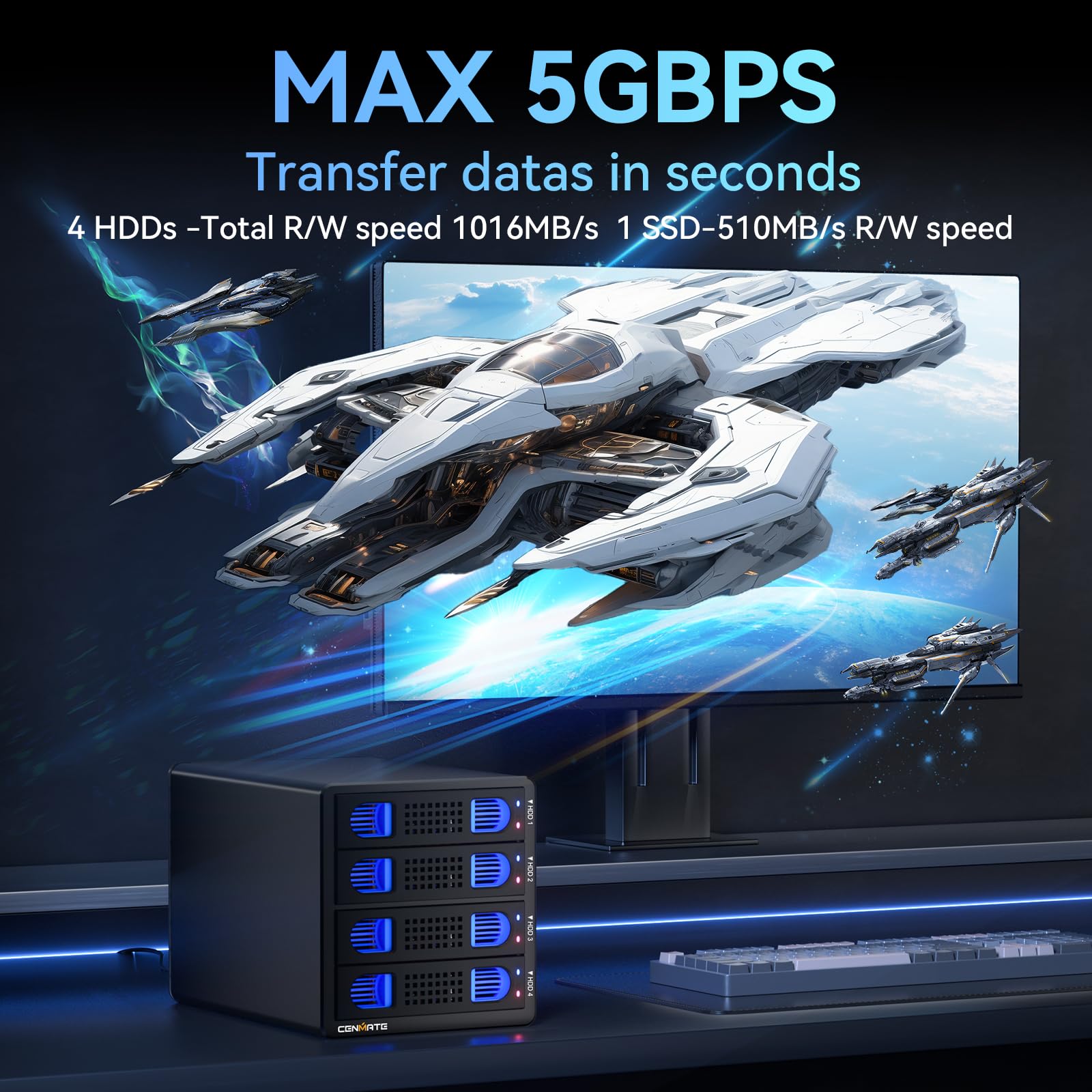- Hohe Kapazität: Unterstützt bis zu vier 2.5/3.5-Zoll-Festplatten (HDD/SSD) mit je bis zu 20TB, für eine Gesamtkapazität von 80TB.