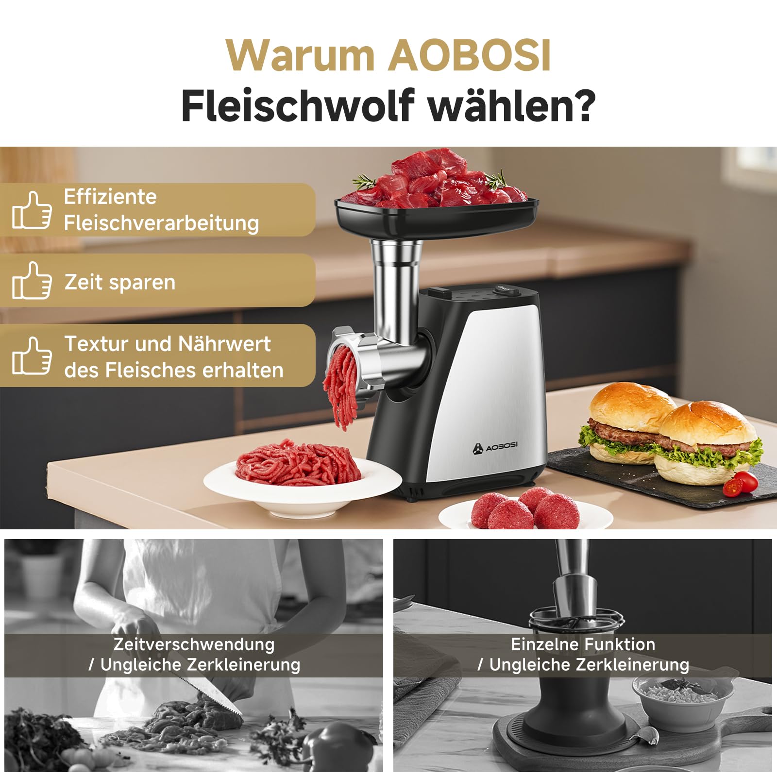 AAOBOSI Elektrischer Fleischwolf 4-in-1 - Edelstahl