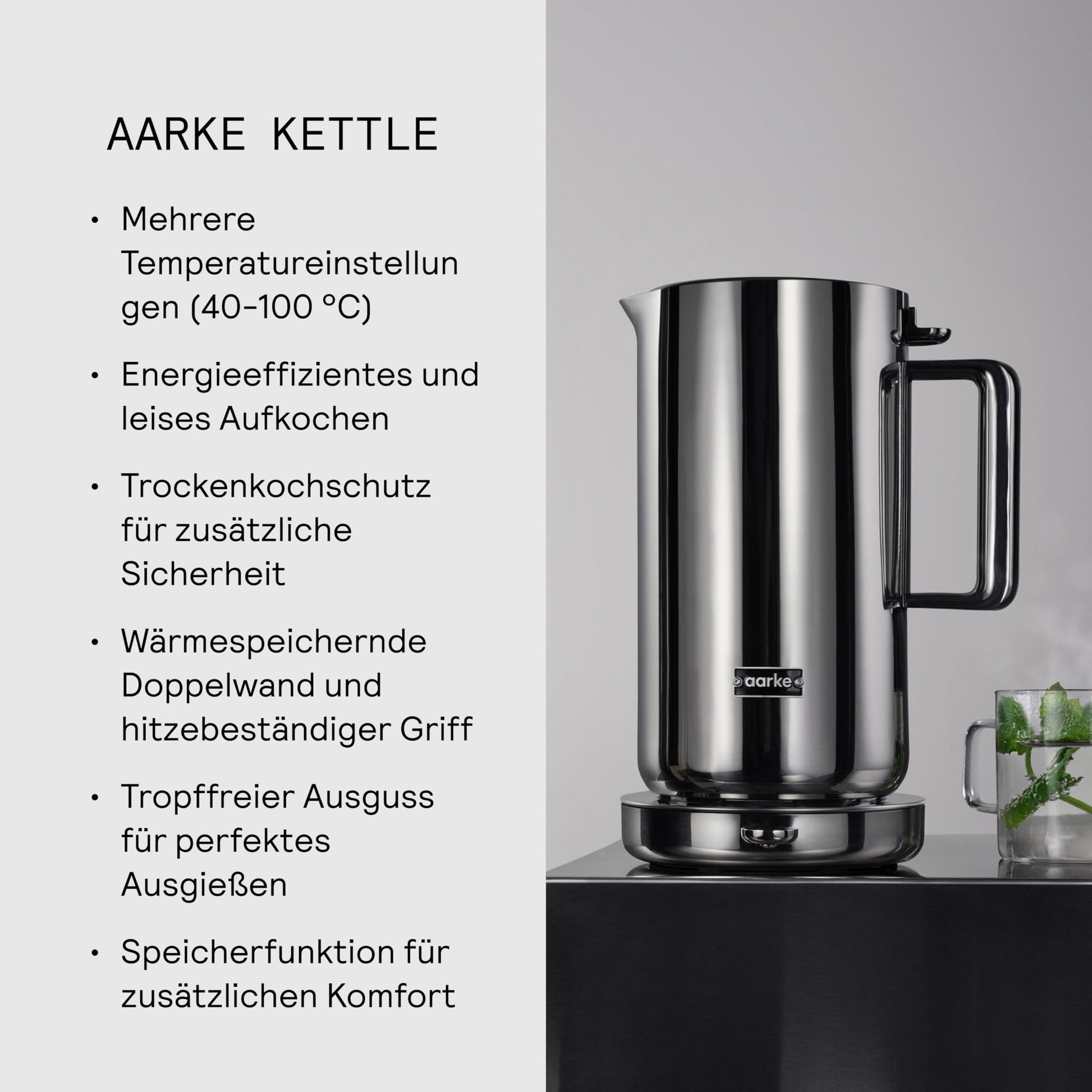 Besitzt der Aarke Wasserkocher eine Warmhaltefunktion?