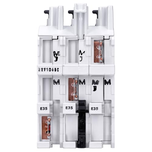Die Modellbezeichnung gibt Aufschluss über die Spezifikationen: Der Automat ist für einen Nennstrom von 35 Ampere ("E35") ausgelegt und es handelt sich um eine 3-polige Ausführung ("/3") für den Einsatz in Drehstromnetzen.