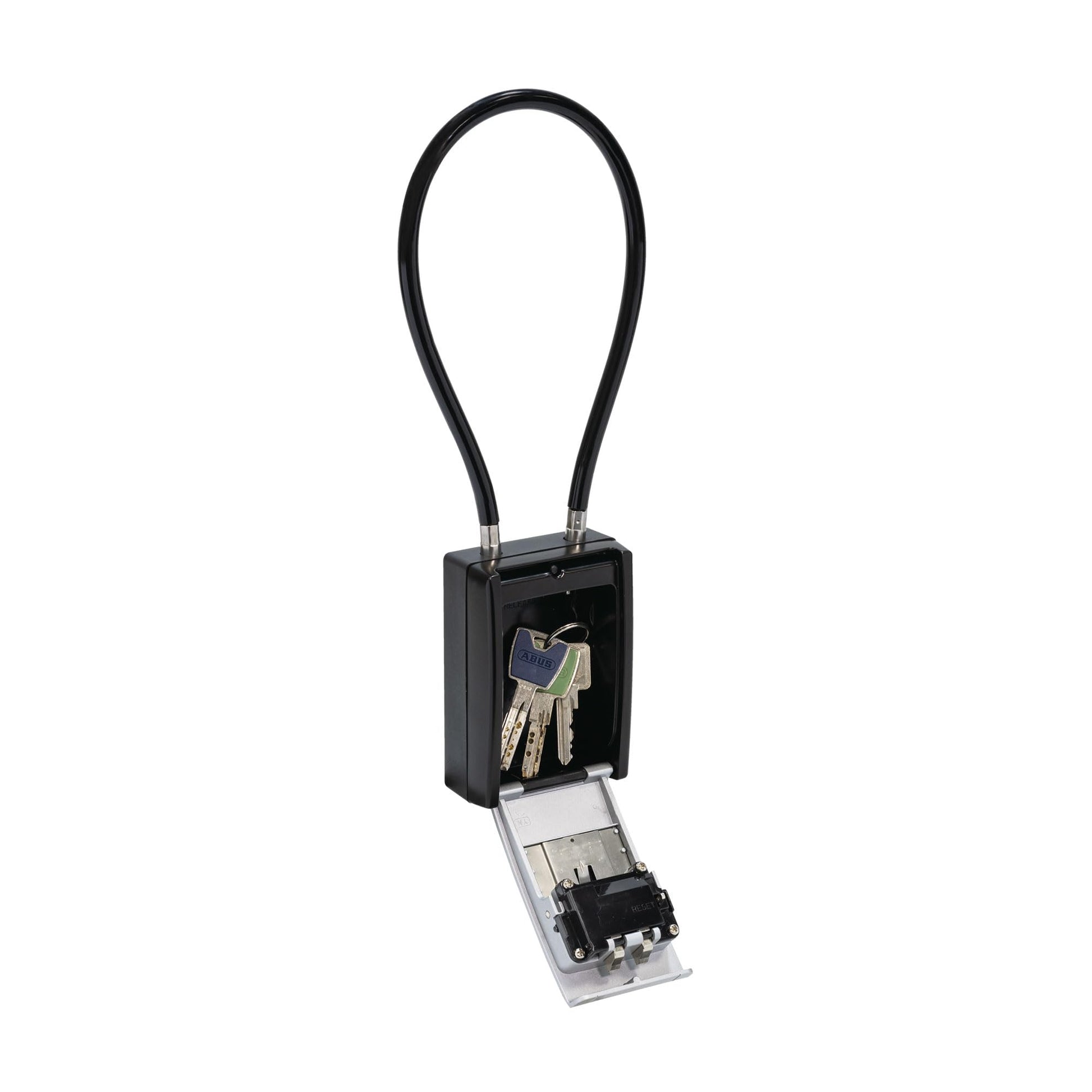 - Robuste Bauweise: Ein widerstandsfähiges Metallgehäuse in Kombination mit einem 10 mm dicken, kunststoffummantelten Stahlkabel schützt den Inhalt zuverlässig.