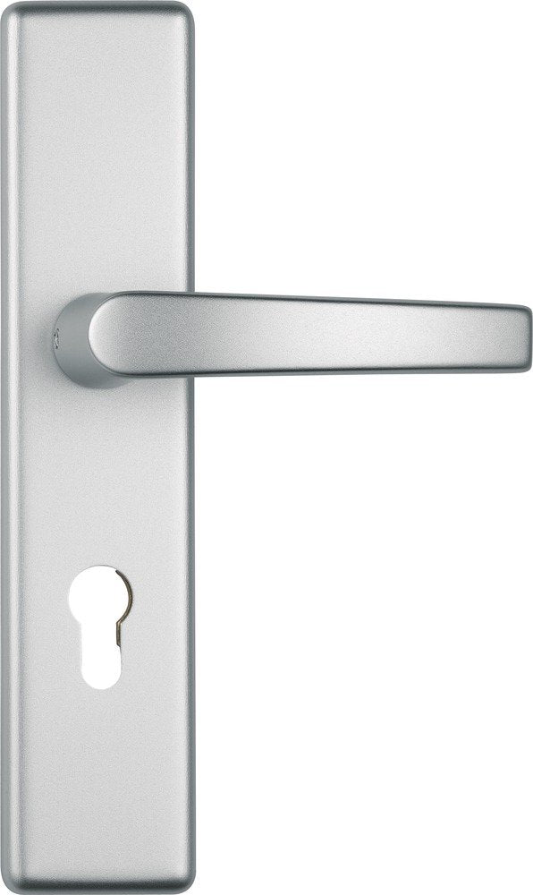 Sichern Sie Ihre Wohnungs-Abschlusstüre effektiv mit diesem Schutzbeschlag. Die stabile Garnitur kombiniert eine hohe Schutzfunktion mit einem schlichten, eckigen Design in Aluminium-Optik und erhöht den Widerstand gegen Einbruchsversuche deutlich.