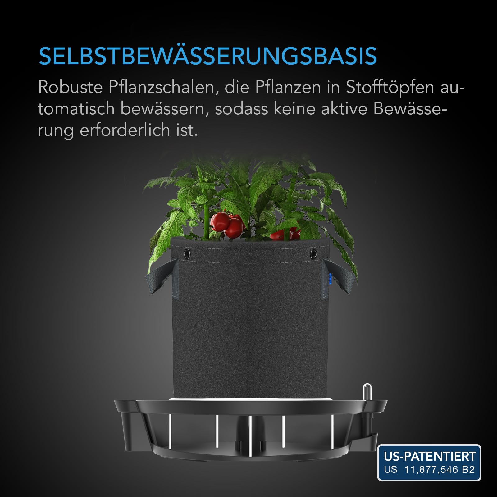 - Automatische Wasserzufuhr: Konzipiert für die kontinuierliche Bewässerung von Stofftöpfen, wodurch manuelles Giessen überflüssig wird.