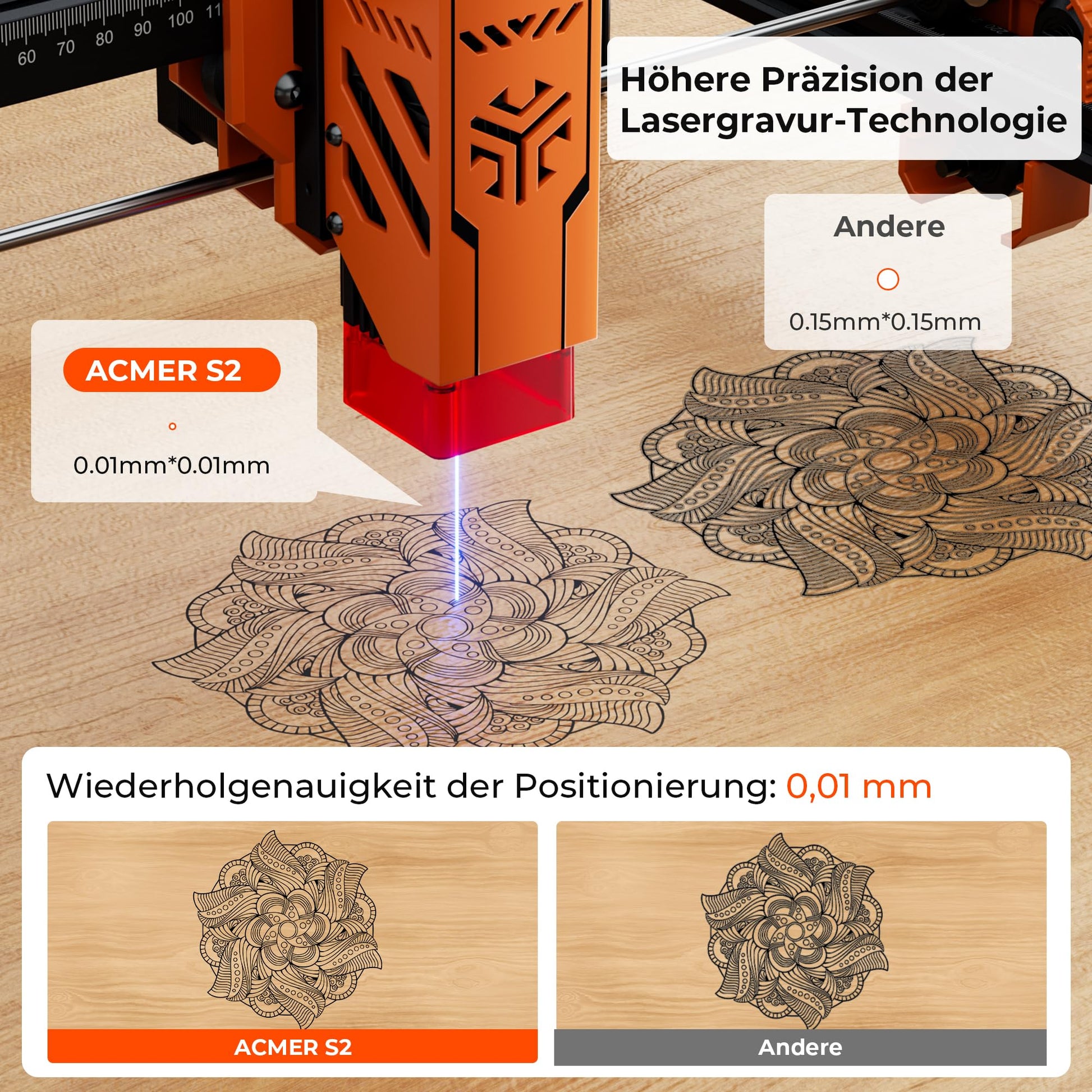 Wie präzise und schnell kann der ACMER S2 7W gravieren?