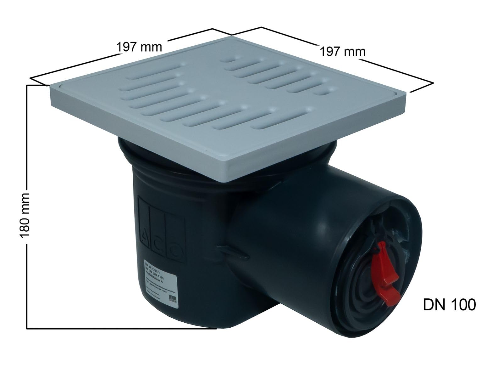 Der Ablauf ist für den Anschluss an Rohre mit der Nennweite DN 100 ausgelegt. Die Abflussleistung beträgt 1,4 Liter pro Sekunde, was für die gängigsten Anwendungen im Keller, wie z.B. von Waschmaschinen oder Ausgussbecken, optimal ist.