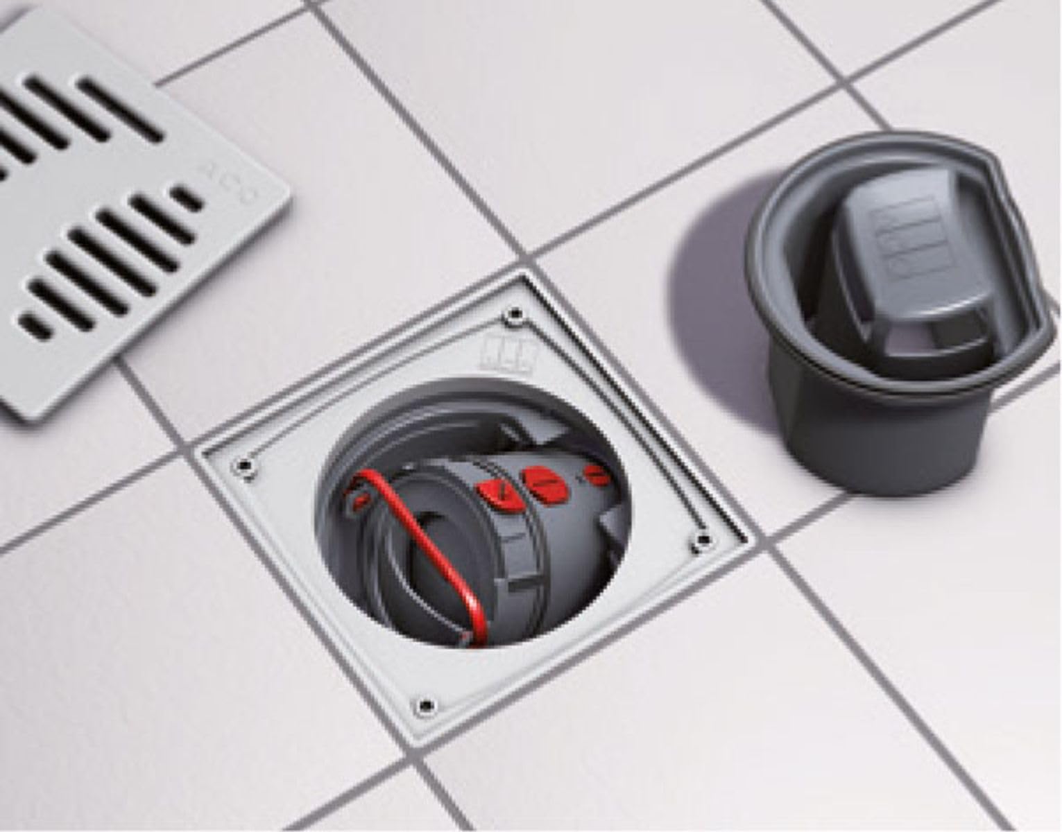Dank seiner kompakten Bauweise eignet sich dieser Kellerablauf ideal für Sanierungen und Einbausituationen mit begrenztem Platz. Die Installation wird durch das drehbare Aufsatzstück, das eine optimale Ausrichtung am Fugenbild ermöglicht, deutlich vereinfacht. Die Wartung ist besonders benutzerfreundlich gestaltet: Sowohl der Schlammeimer als auch der Siphon können für die Reinigung komplett werkzeuglos entnommen werden.