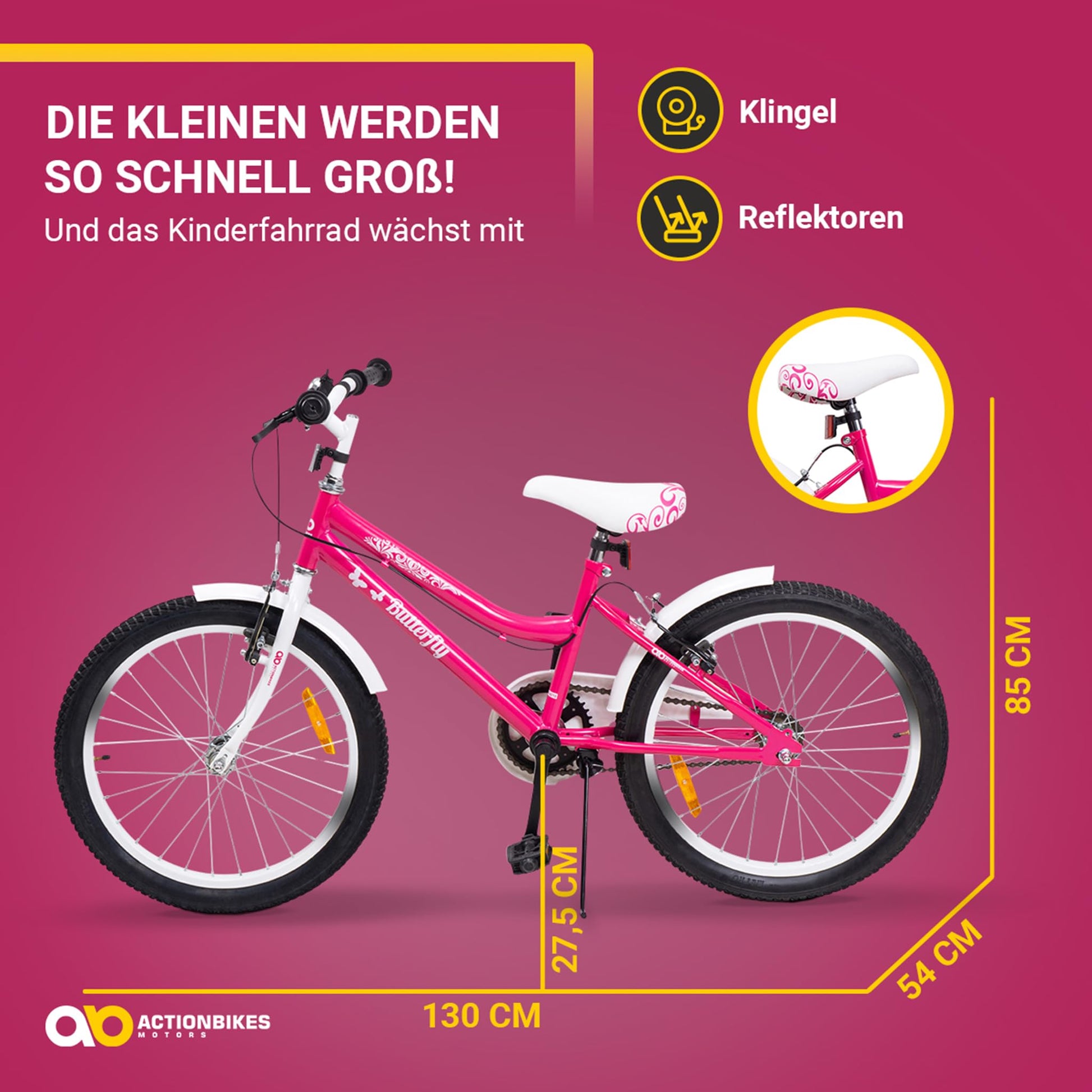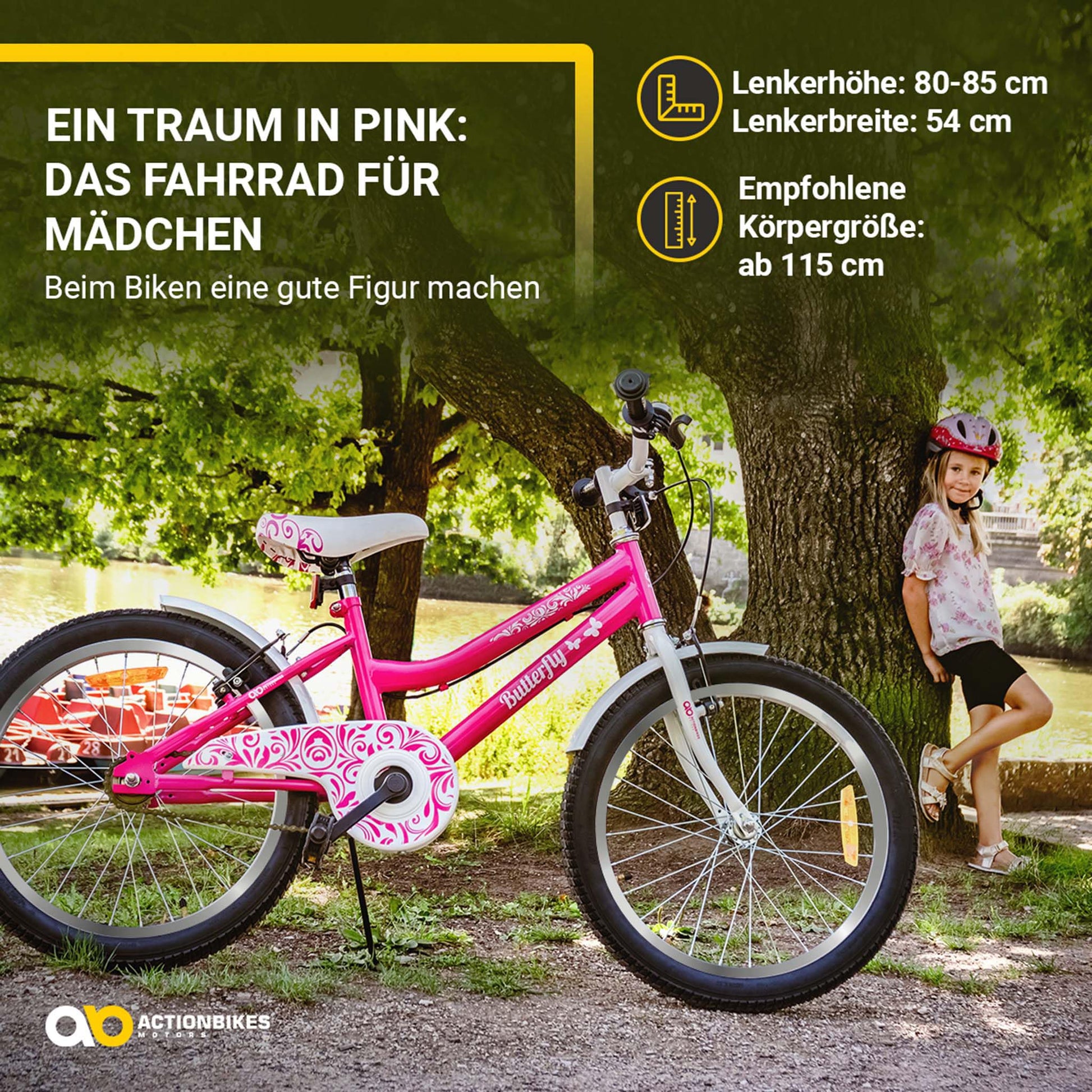 Actionbikes Butterfly 20 Zoll Kinderfahrrad Mädchen - Pink/Weiss