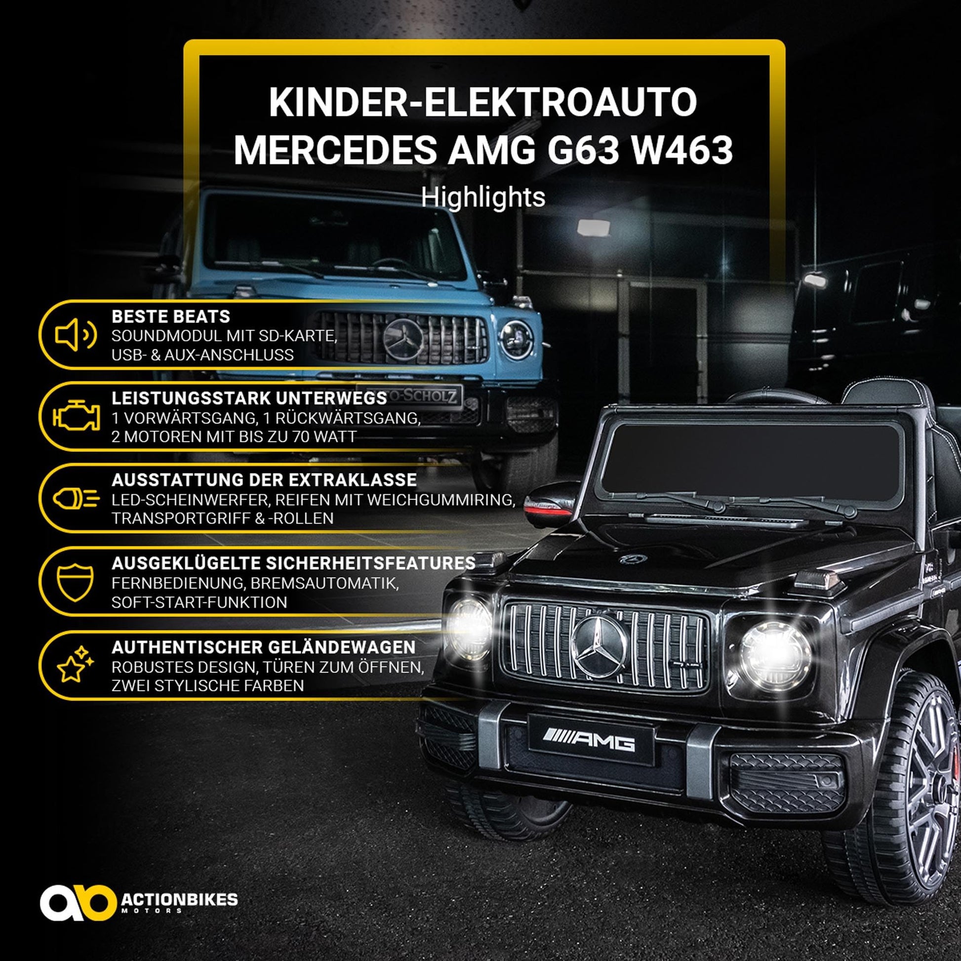 Actionbikes Motors Mercedes AMG G63 Kinder Elektroauto - Schwarz
