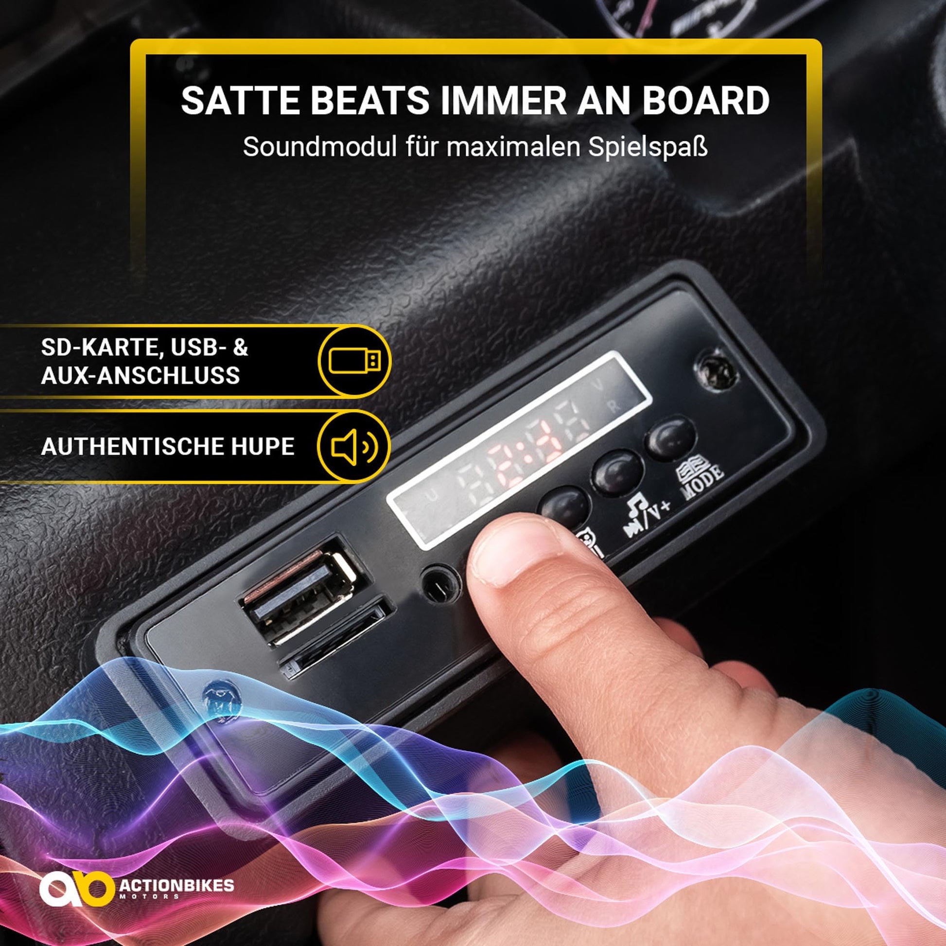 - Komfort & Unterhaltung: Ein bequemer Kunstledersitz und die gefederte Hinterachse sorgen für Fahrkomfort. LED-Scheinwerfer, Motorsound und ein Multifunktionslenkrad mit Musik und Hupe garantieren ein interaktives Erlebnis.