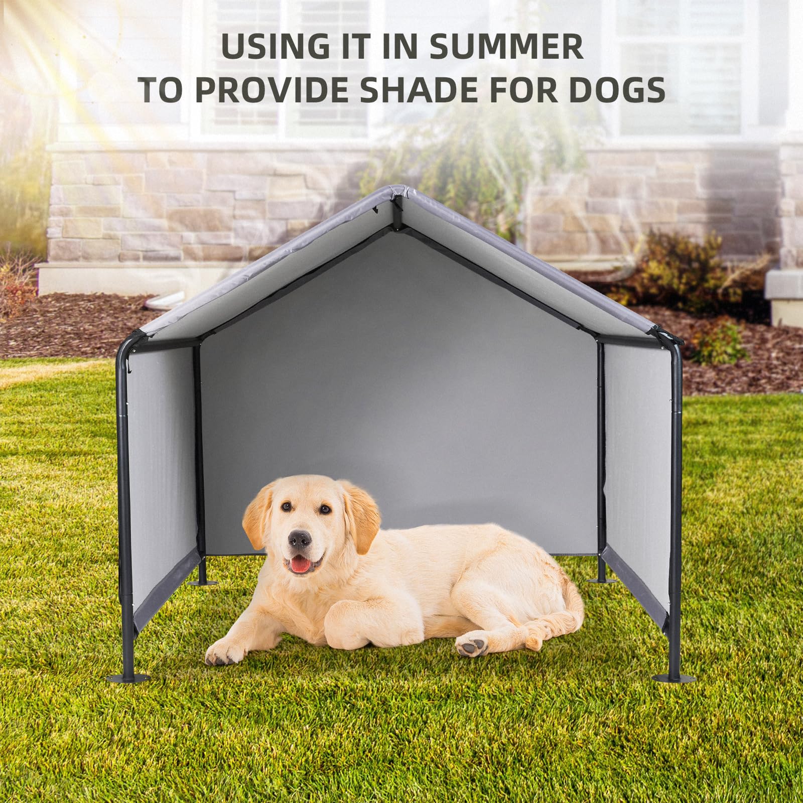 Schützen Sie Ihre Haustiere das ganze Jahr über vor den Elementen. Das wasserdichte Dach spendet an heissen Tagen kühlen Schatten und hält Ihren Liebling bei Regen trocken. Im Winter bietet die robuste Konstruktion zusammen mit der optionalen Rückwand effektiven Schutz vor Wind und Schnee, was es zu einem idealen Unterschlupf für Hunde, Katzen oder sogar Hühner macht.