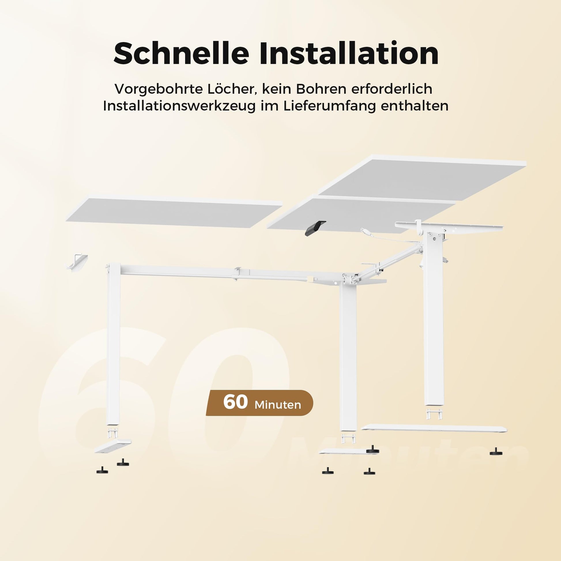 Agilestic Eckschreibtisch Höhenverstellbar – 160x140 cm Weiss