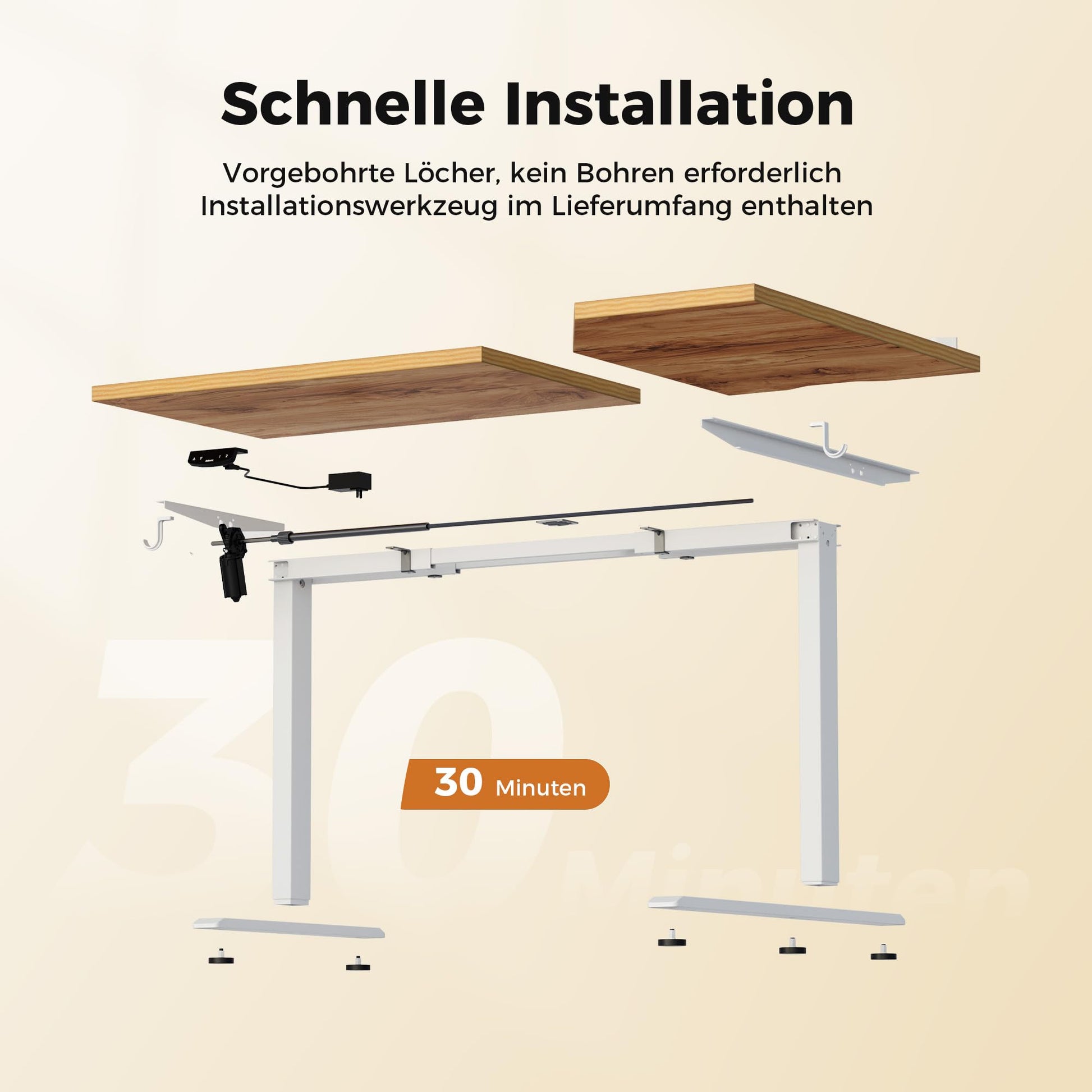 Dank der detaillierten Anleitung und einem online verfügbaren Installationsvideo ist der Aufbau unkompliziert. Ein Schreibtisch, der sich perfekt an Sie und Ihren Raum anpasst.