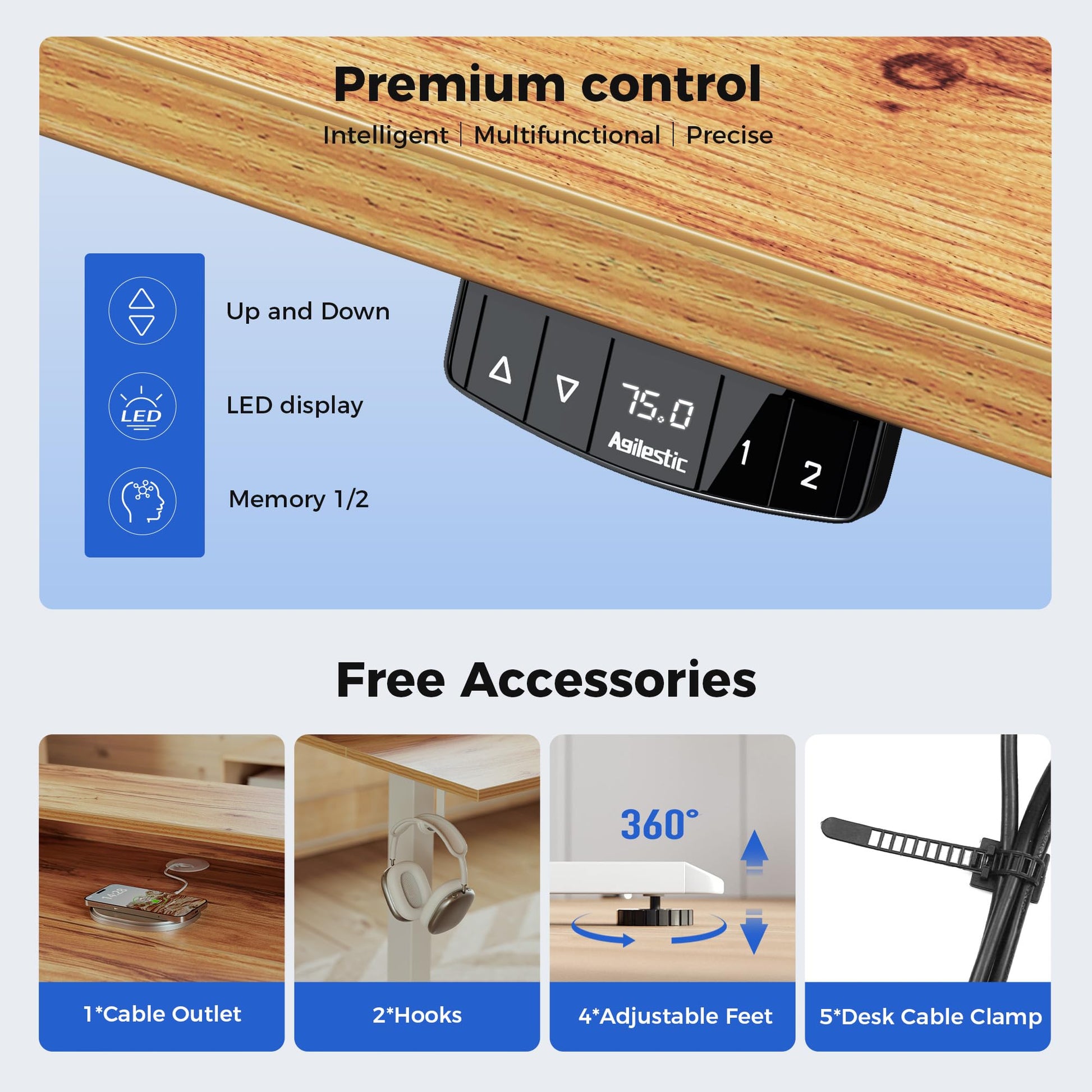 Gestalten Sie Ihren Arbeitsplatz dynamisch und gesund mit diesem elektrisch höhenverstellbaren Schreibtisch von Agilestic. Er vereint ein stilvolles Design in Hellbraun mit durchdachter Funktionalität, um Ihren Arbeitsalltag ergonomischer und produktiver zu gestalten.
