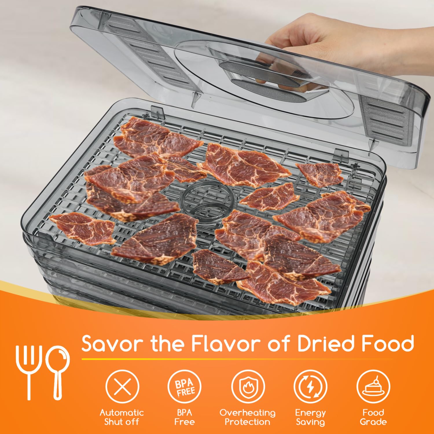 Bereiten Sie eine Vielzahl an Köstlichkeiten zu – von knackigen Apfel- und Bananenchips über aromatisches Dörrfleisch bis hin zu getrockneten Kräutern. Dank der anpassbaren Höhe der Dörr-Etagen können Sie auch dickere Lebensmittel mühelos verarbeiten. Die präzise einstellbare Temperatur und der Timer garantieren dabei stets perfekte Ergebnisse für jede Zutat.