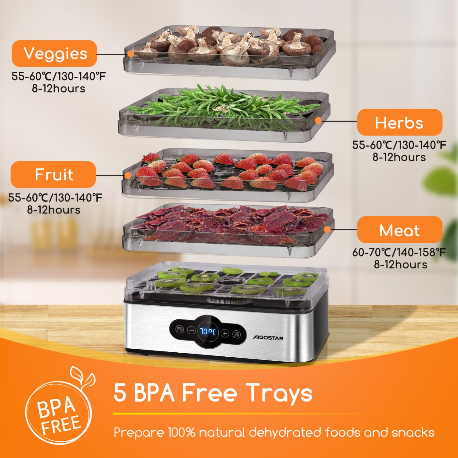 Aigostar Crispy Dörrautomat - Edelstahl, Temperatur & Timer