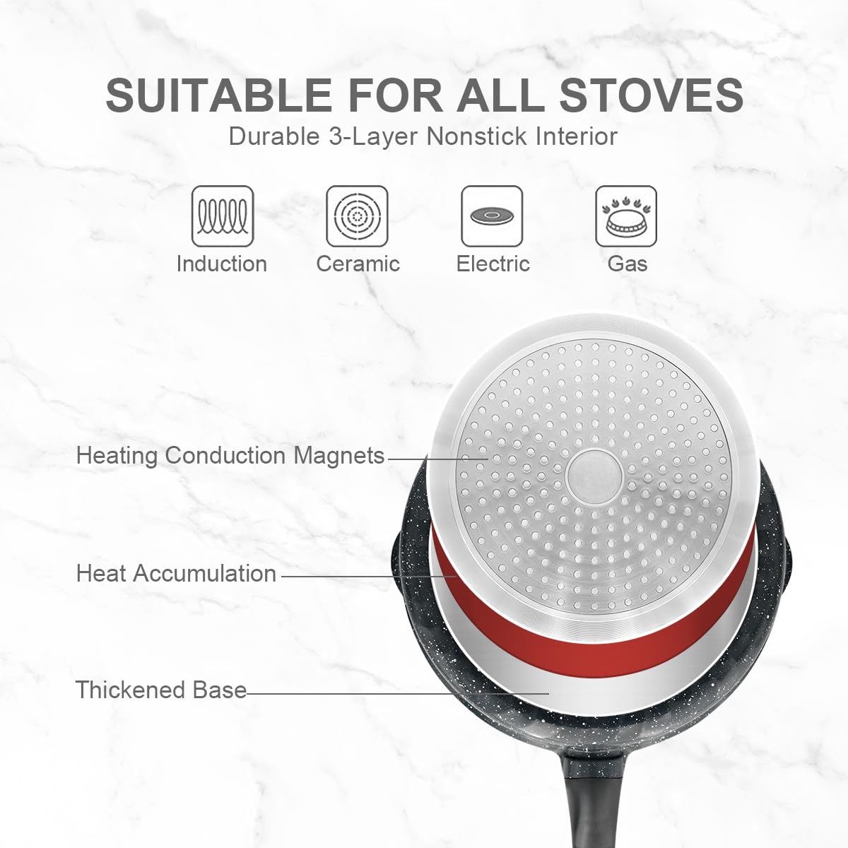 - Für alle Herdarten geeignet: Dank des magnetisierten Bodens funktioniert das Set zuverlässig auf Induktions-, Gas-, Elektro- und Glaskeramikherden.