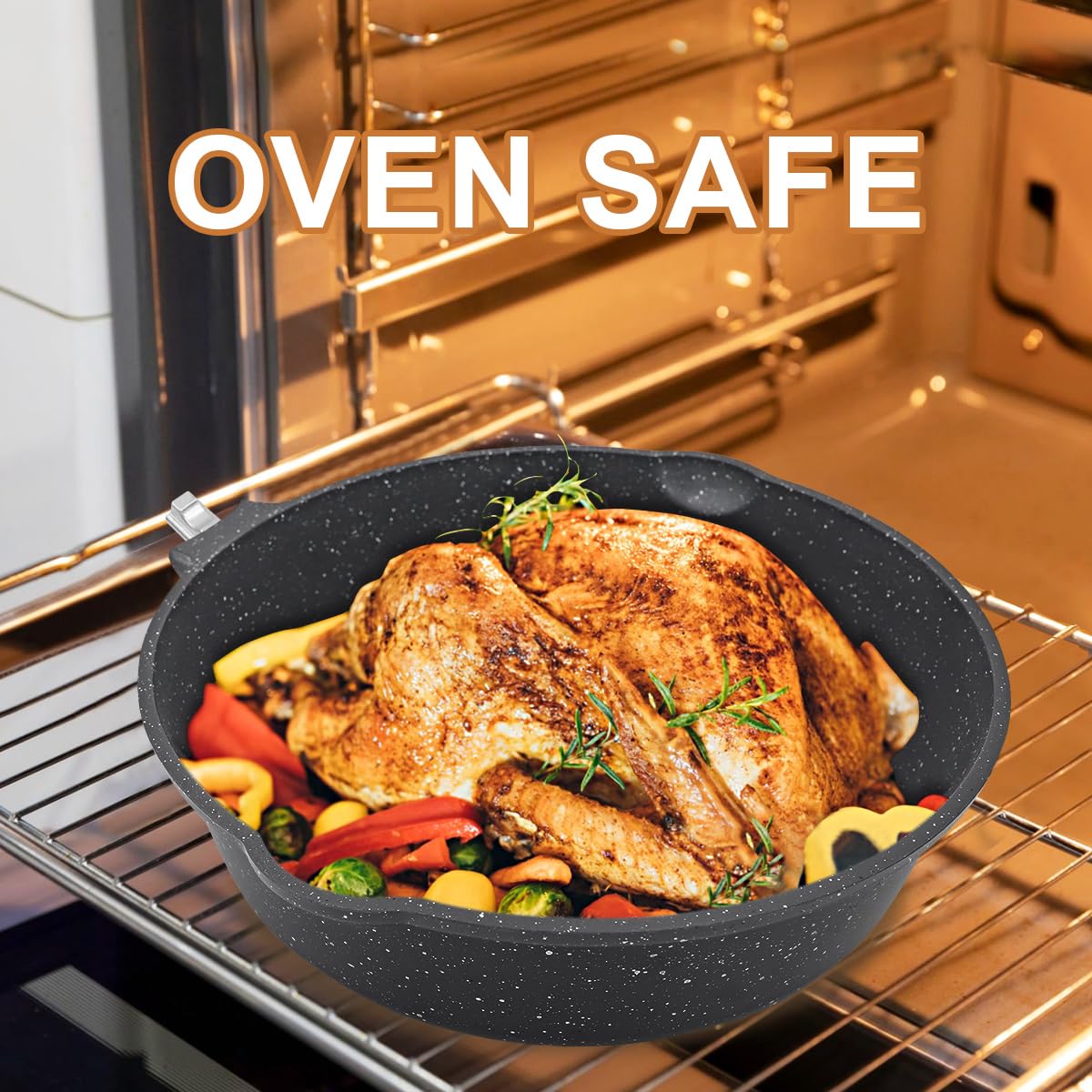 - Backofentauglich: Die Pfannen sind hitzebeständig und können ohne Griff bei Temperaturen bis zu 260 °C (500 °F) im Backofen verwendet werden.