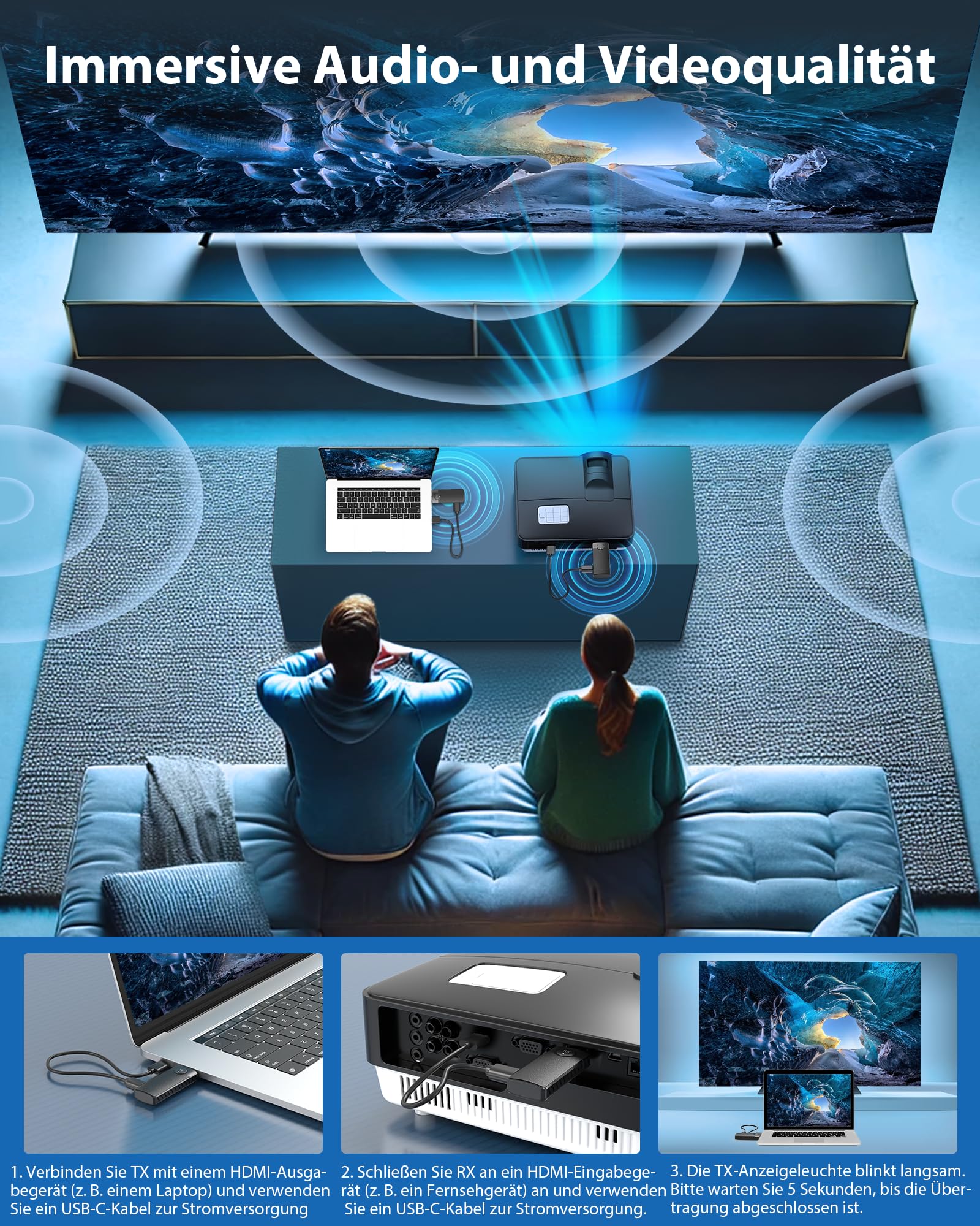 - Kabellose HDMI-Übertragung: Macht Schluss mit Kabelsalat zwischen Quellgerät und Bildschirm.