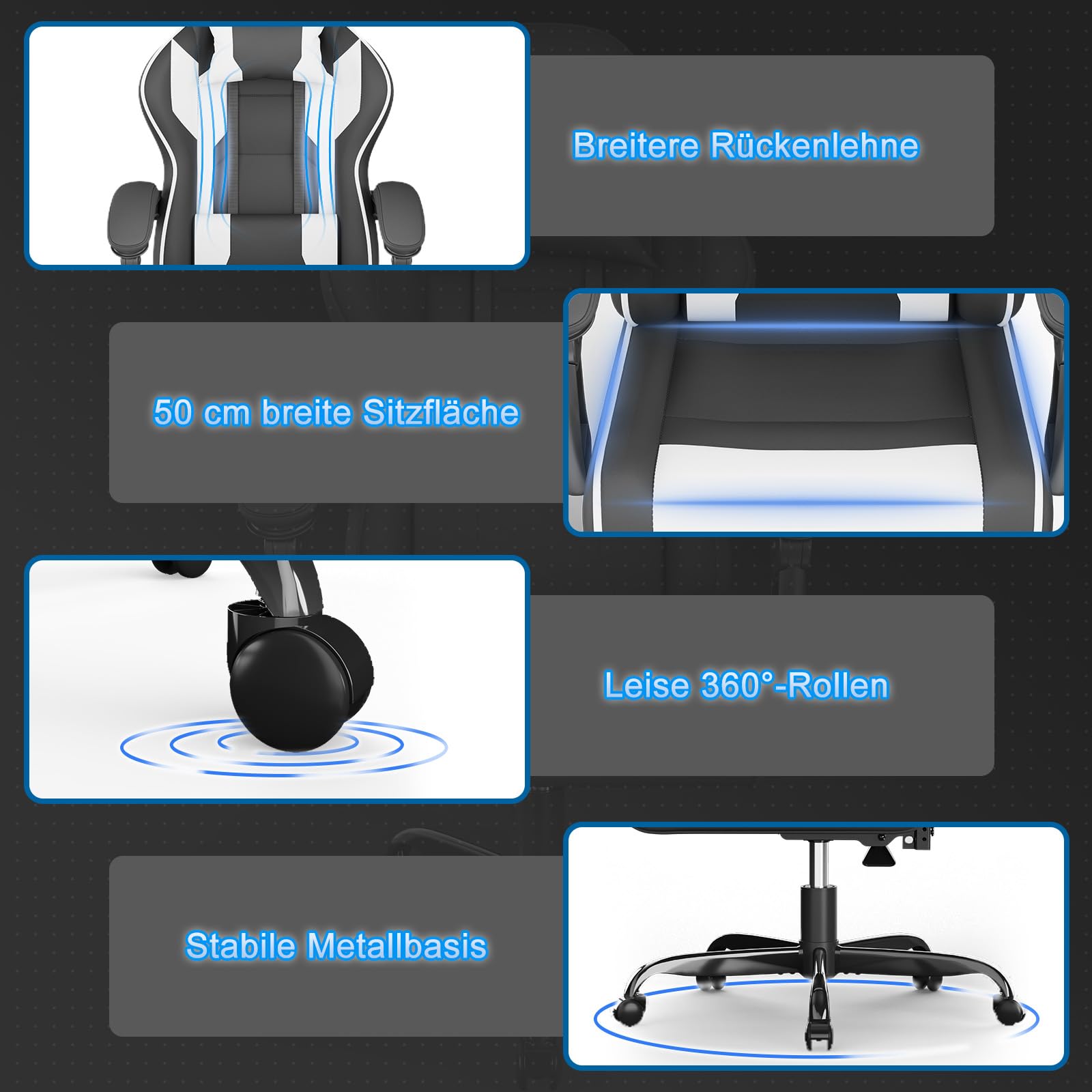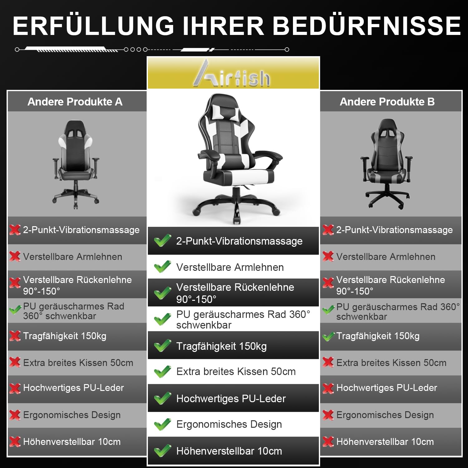 Airfish Ergonomischer Massage Gaming Bürostuhl - Weiss