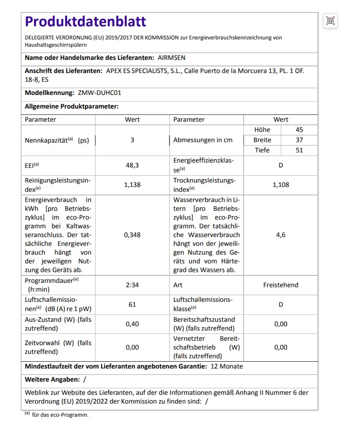 Entdecken Sie den ultrakompakten Tischgeschirrspüler von AIRMSEN, die ideale Lösung für kleine Küchen und Haushalte, die Effizienz und Komfort grossschreiben. Dieses Gerät kombiniert ein schlankes Design mit leistungsstarker Reinigungstechnologie.