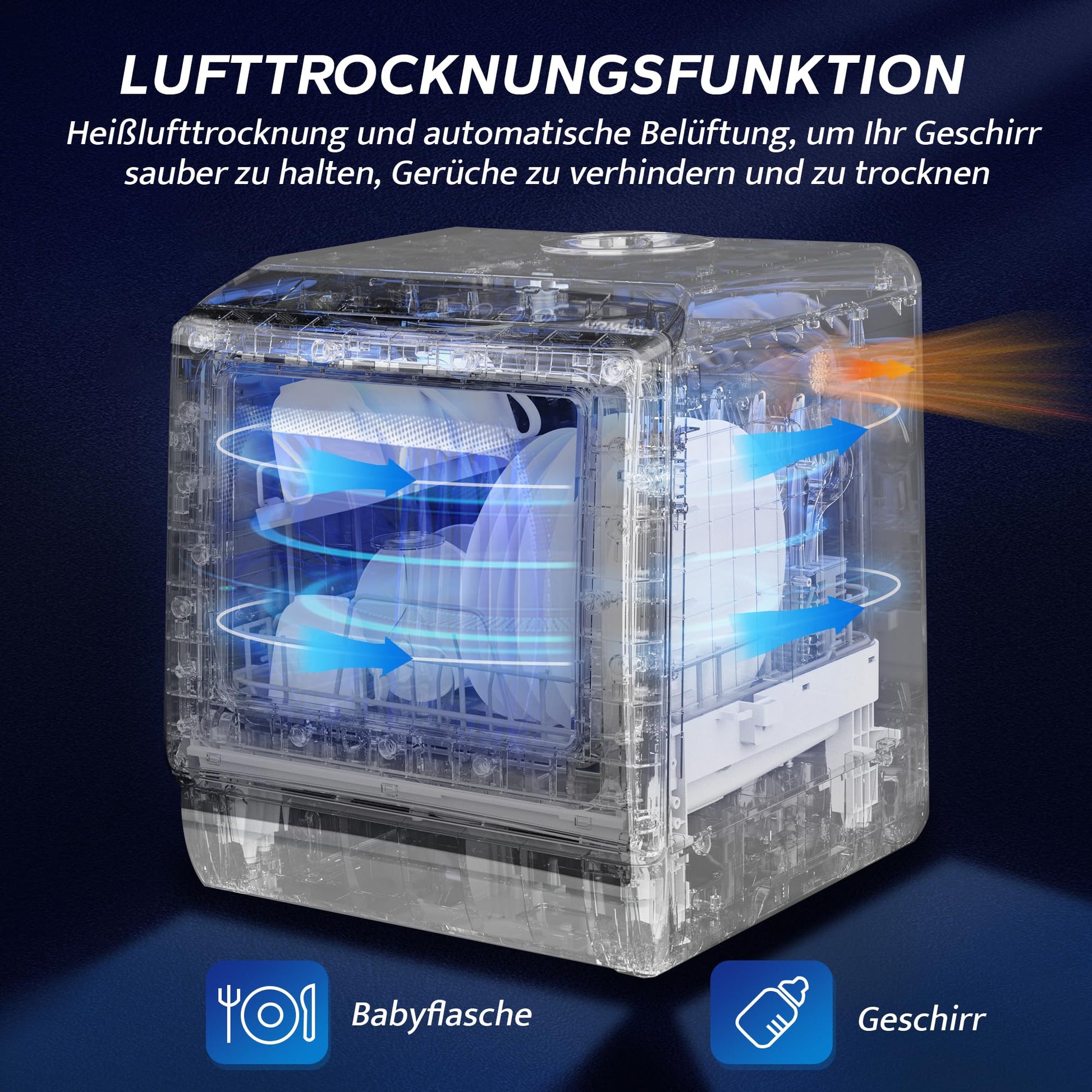AIRMSEN Mini Tischgeschirrspüler - 5 Programme, Weiss/Schwarz