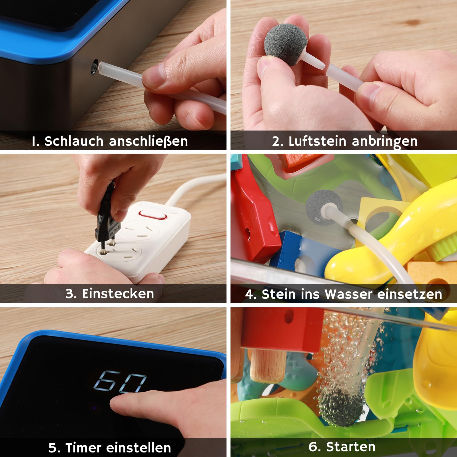 - Ersatzteile: Passende Ersatzrohre und Diffusorsteine sind unter der Referenz B095WVPM5M erhältlich.