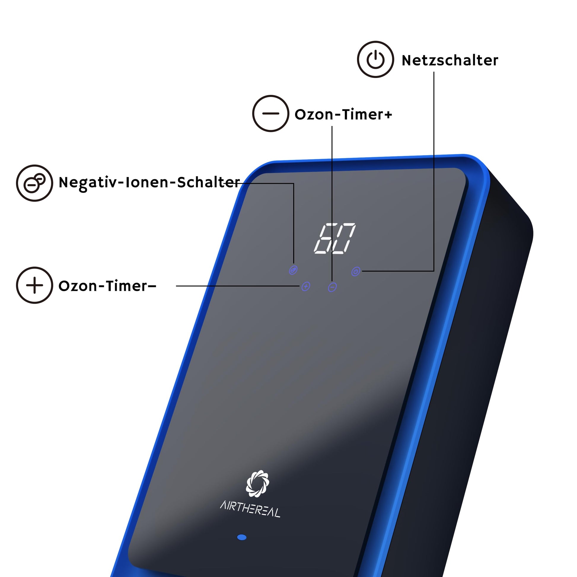 - Integrierter Ionisator: Eine zuschaltbare Negativ-Ionen-Funktion hilft, Schwebeteilchen aus der Luft zu binden und die Ausbreitung von Viren zu reduzieren.