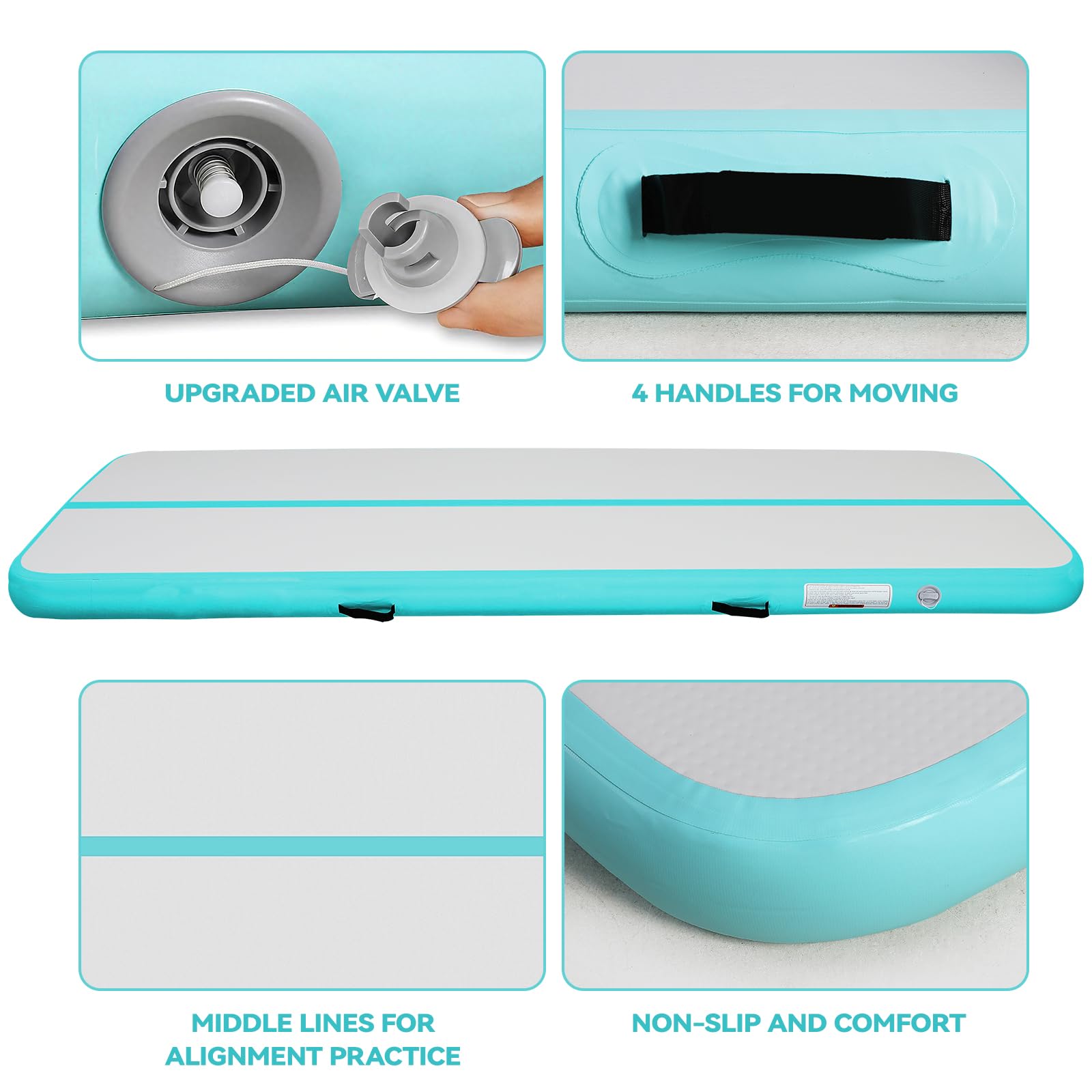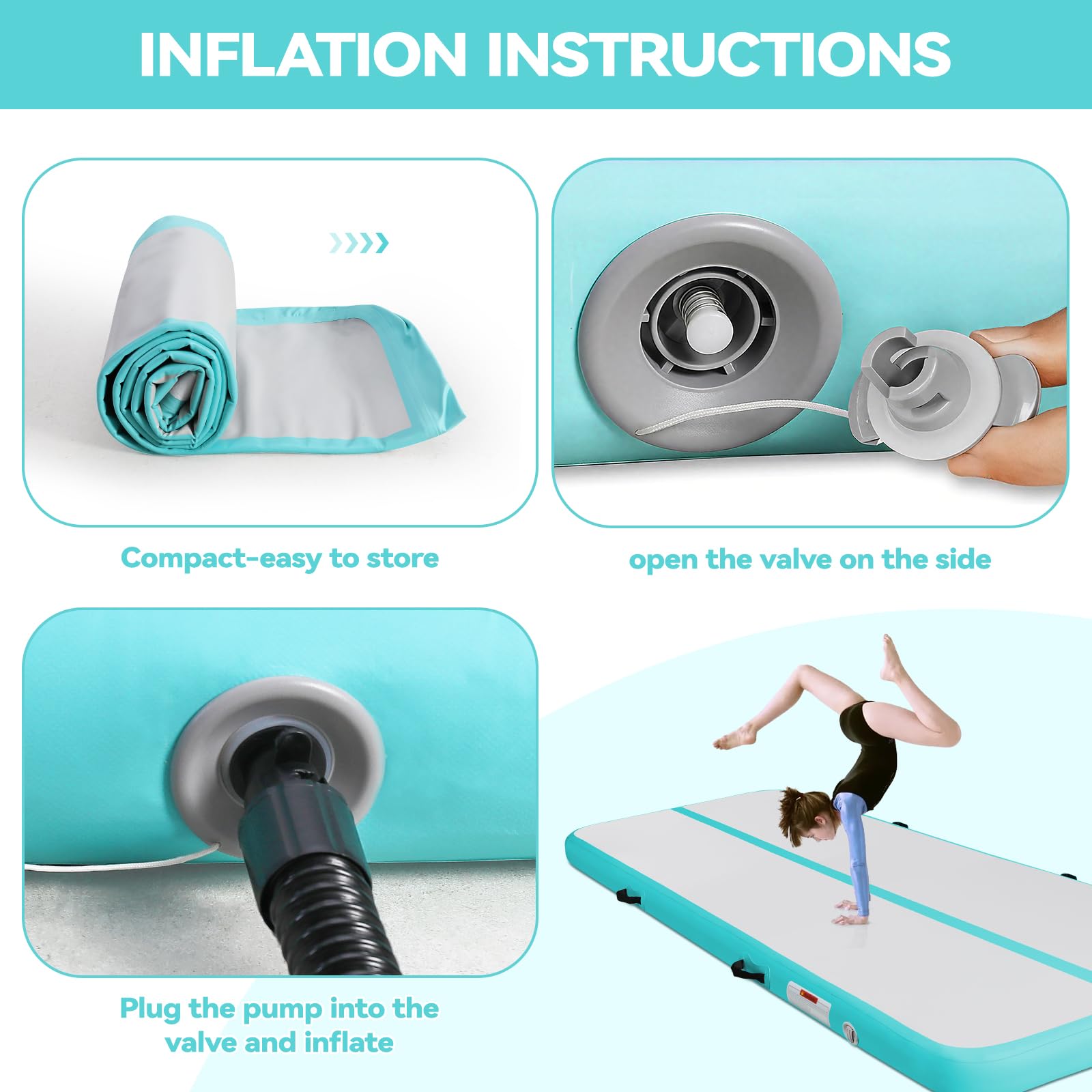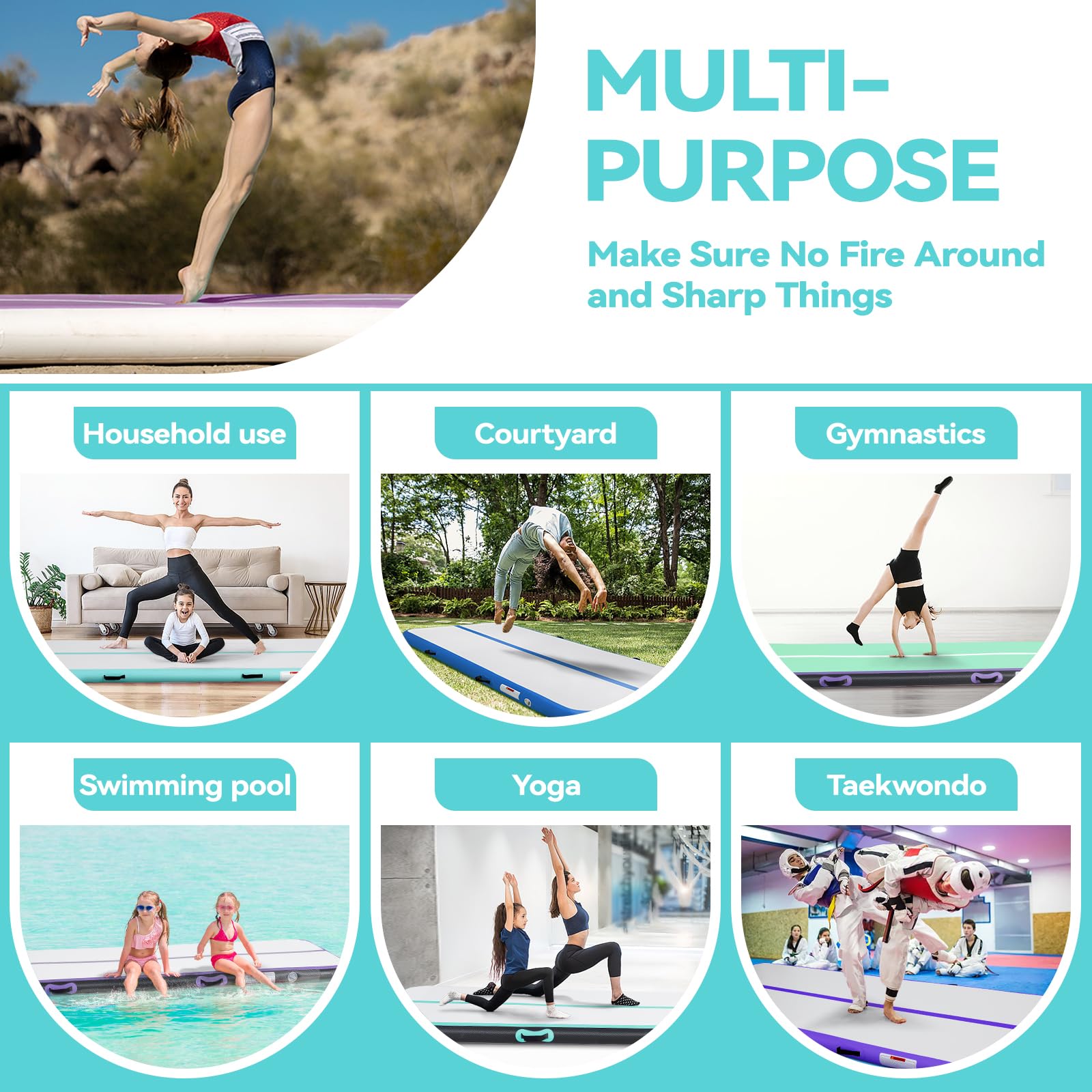 Die Einsatzmöglichkeiten sind nahezu unbegrenzt. Nutzen Sie die aufblasbare Turnmatte in der Sporthalle, in der Schule, im Garten, im Park oder sogar auf dem Wasser. Sie eignet sich hervorragend für Gymnastik, Cheerleading, Hochleistungstraining, Tanz oder einfach als Freizeitgerät für die ganze Familie. Achten Sie lediglich darauf, die Matte von Feuer und scharfen Gegenständen fernzuhalten.