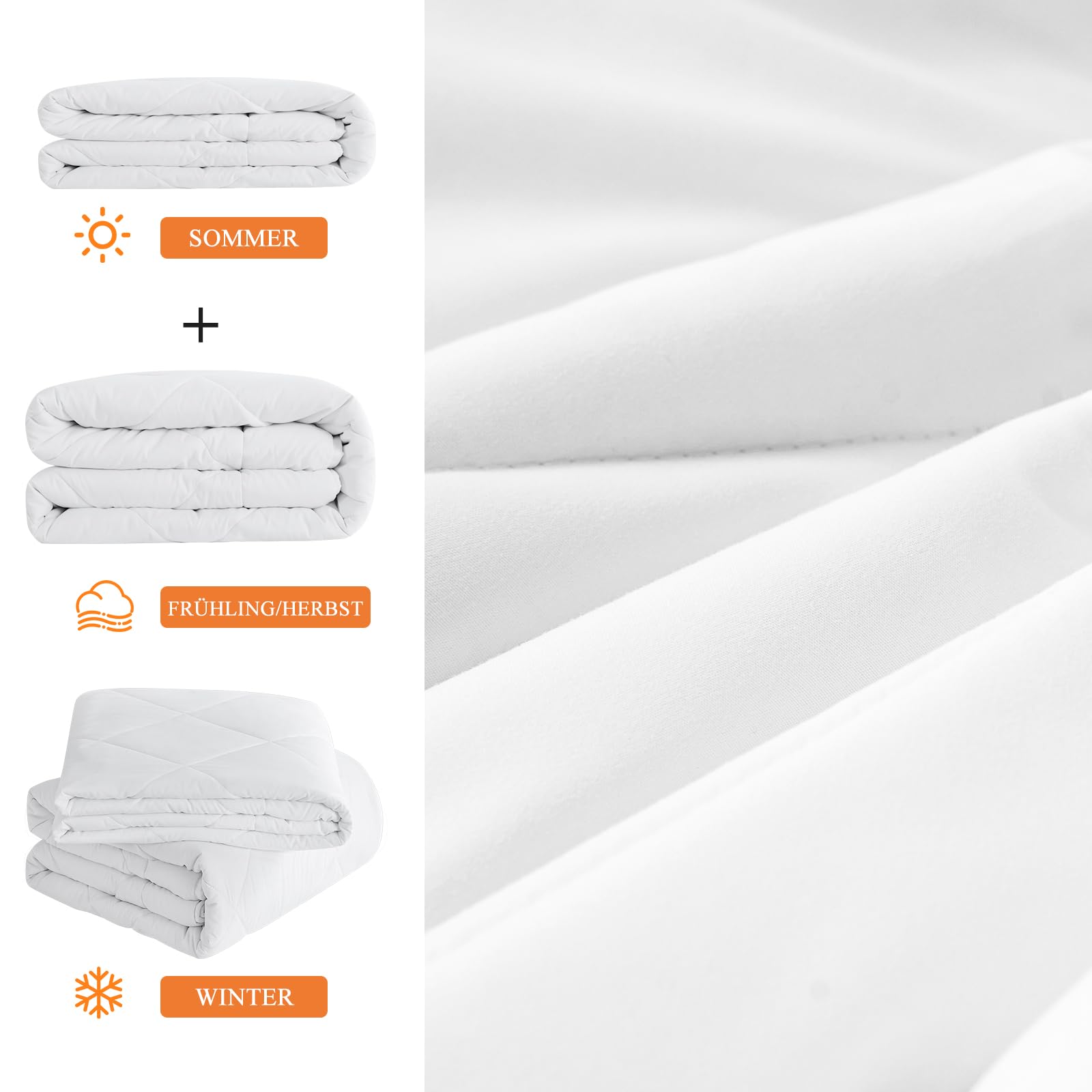 - Flexibles 2-in-1-System: Bestehend aus einem leichten Sommerduvet (150 g/m²) und einem wärmeren Duvet für die Übergangszeit (300 g/m²).