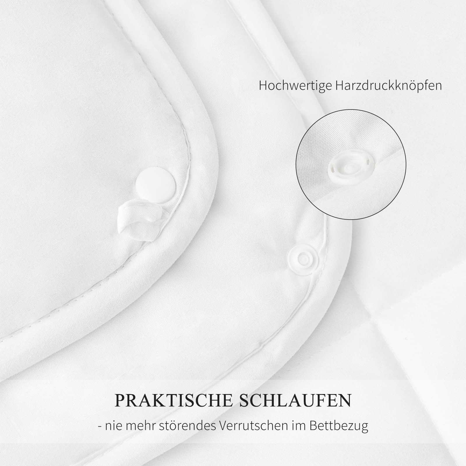 - Praktische Befestigung: Acht Schlaufen an den Ecken und Seitenrändern ermöglichen eine sichere Fixierung im Duvetbezug.
