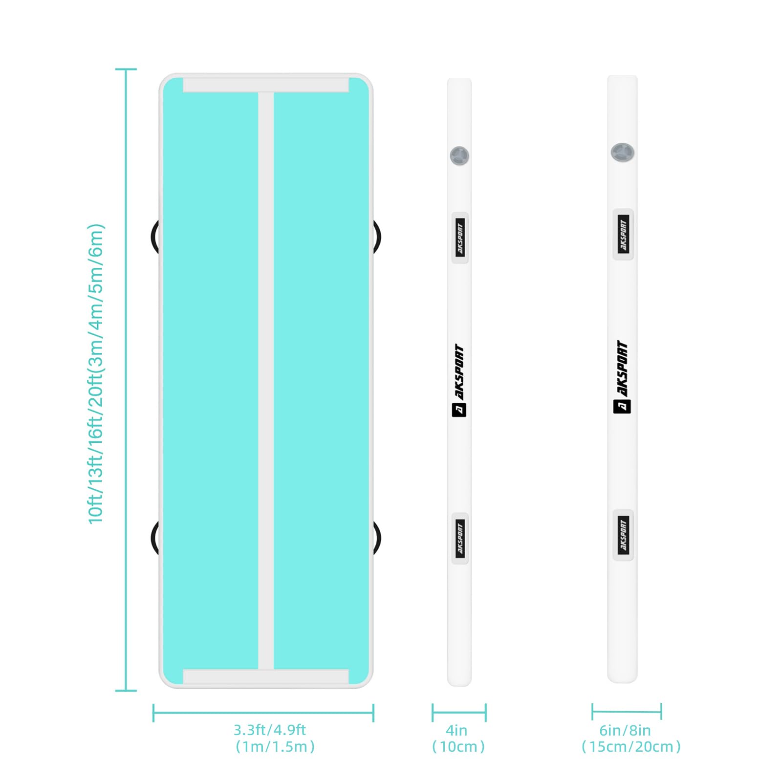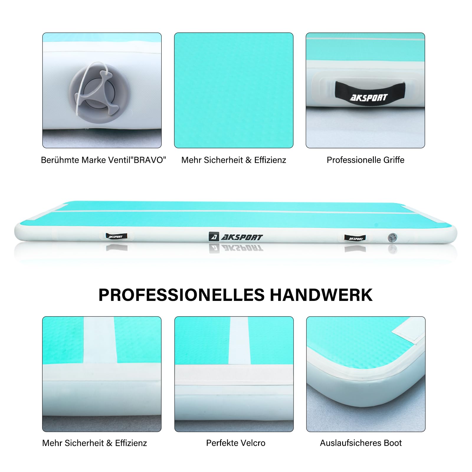 AKSPORT Air Track Tumblingmatte aufblasbar – doppelt mintgrün