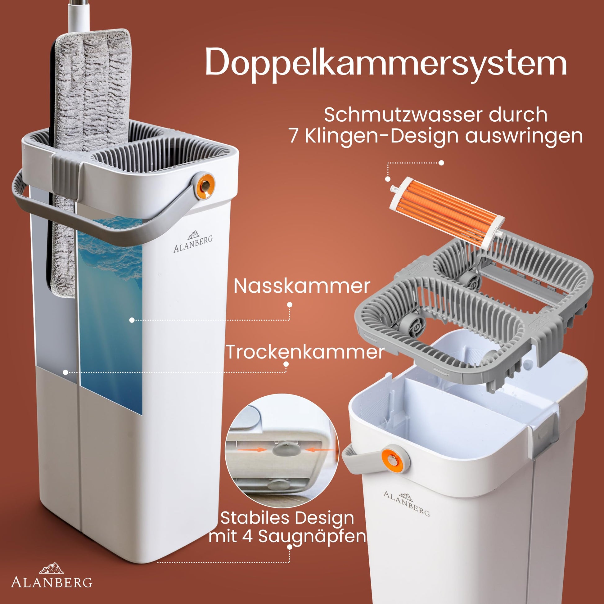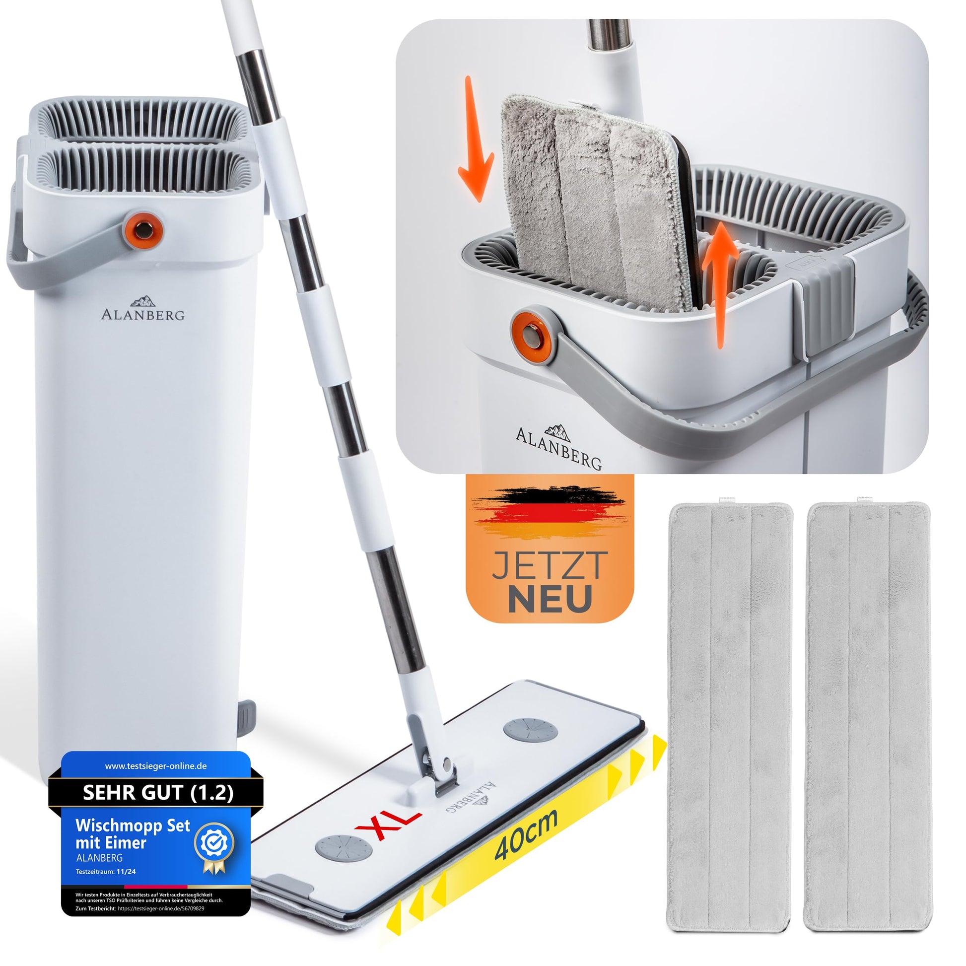 ALANBERG XL Wischmopp Set 2-Kammer – Selbstauswringend Weiss