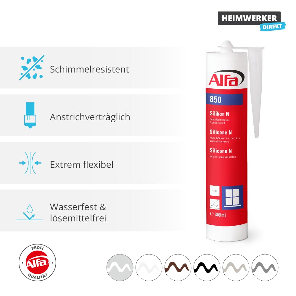 Alfa Silikon Bausilikon Fugendichtstoff - Steingrau 12er-Pack