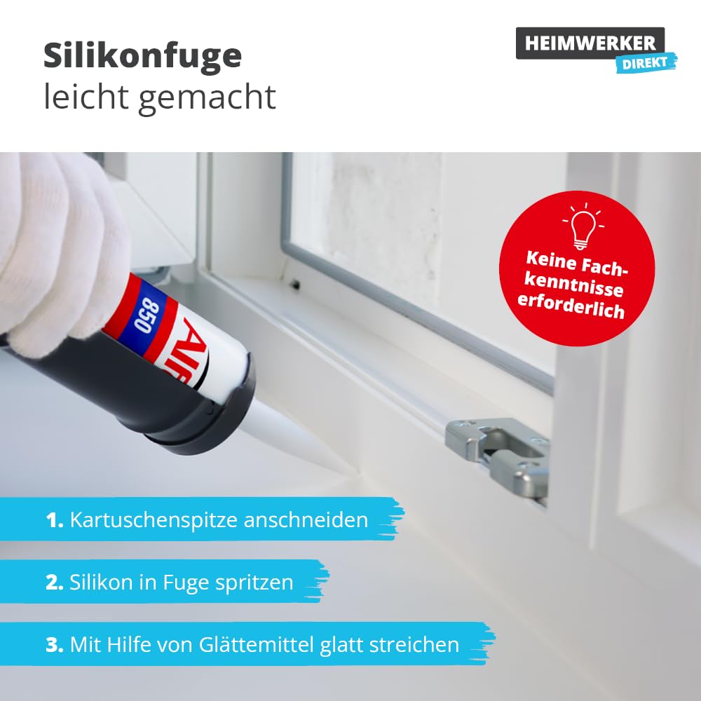- Materialschonend: Als neutralvernetzender Dichtstoff greift er Metalle nicht an und ist mit vielen Baustoffen verträglich.
