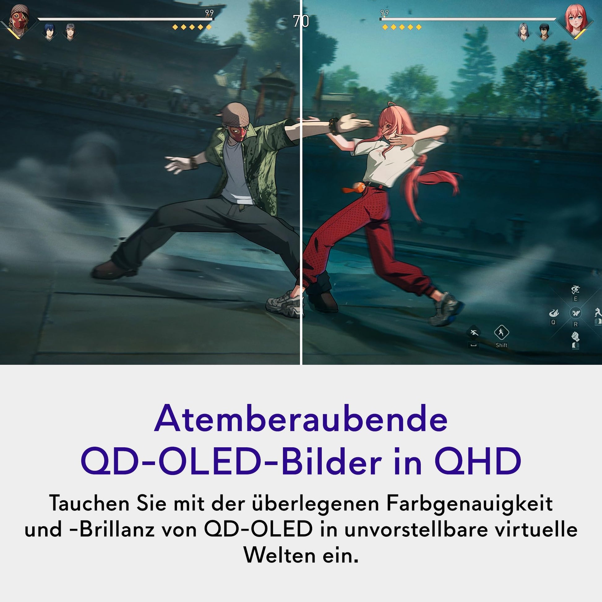 - Herausragende QD-OLED-Bildqualität: Erleben Sie eine beeindruckende visuelle Darstellung dank 99,3 % DCI-P3-Farbraumabdeckung und einer werkseitigen Farbkalibrierung (Delta E<2), die für lebensechte Farben und tiefstes Schwarz sorgt.