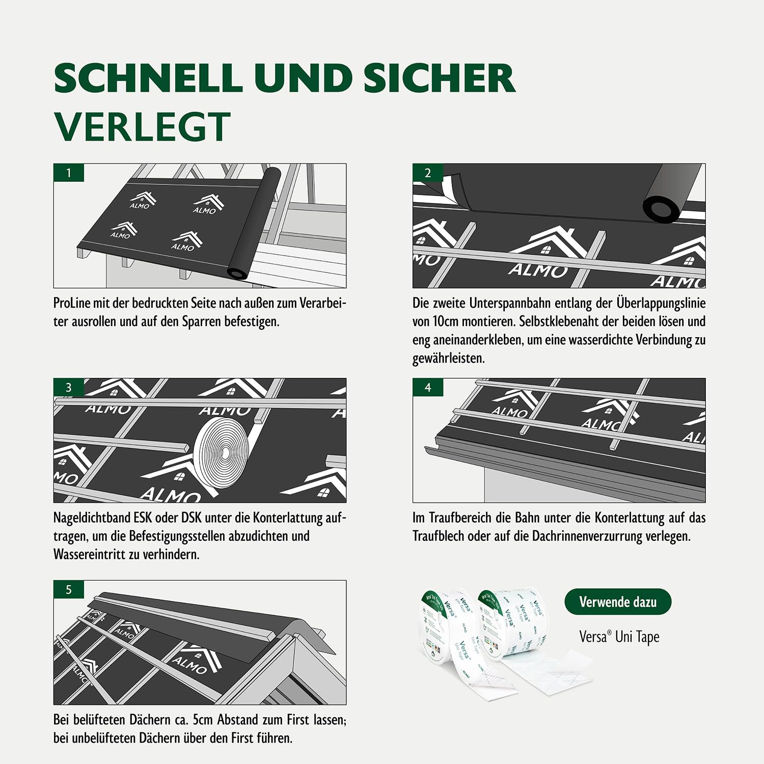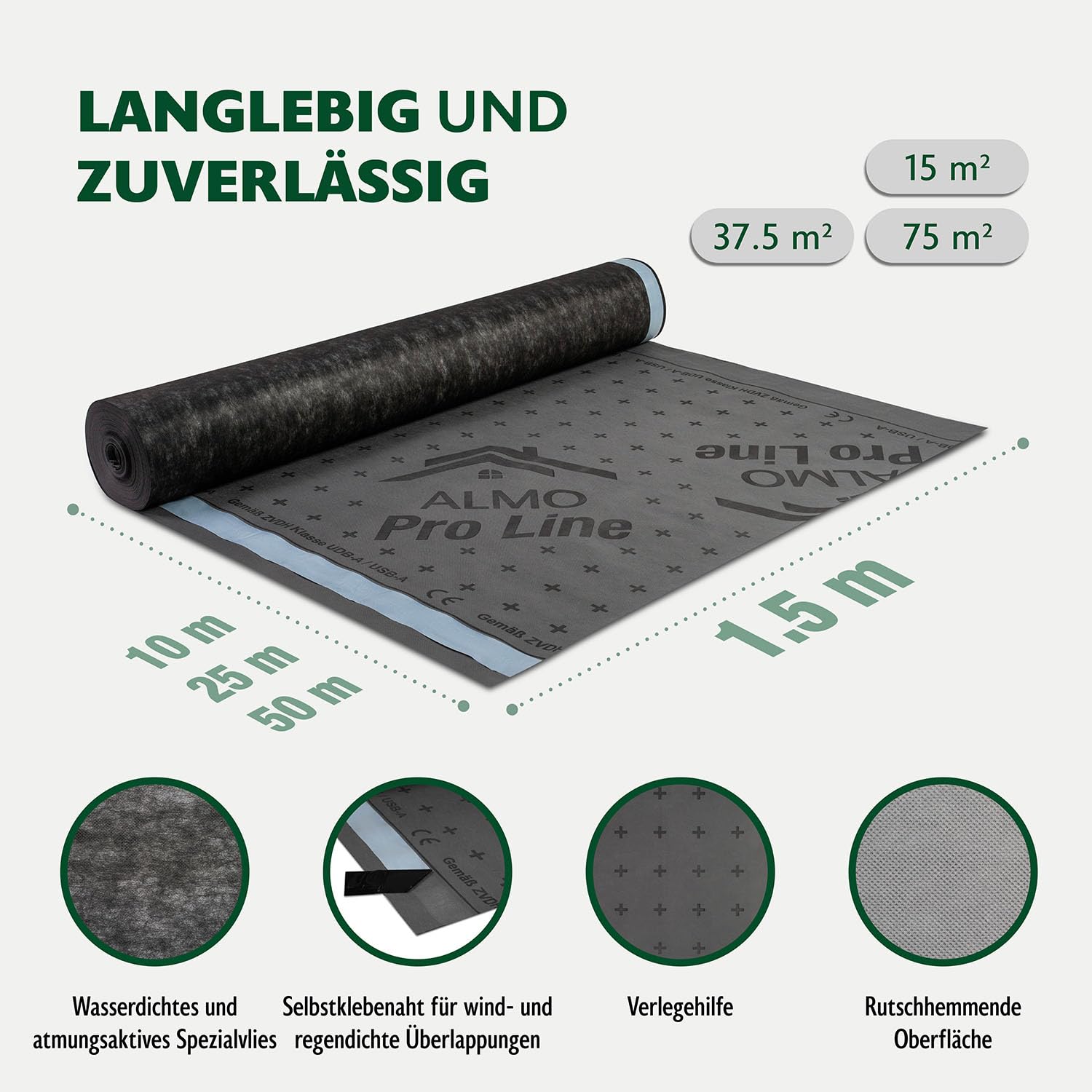 ALMO diffusionsoffene UV Unterspannbahn 37.5m² – mit Selbstklebenaht