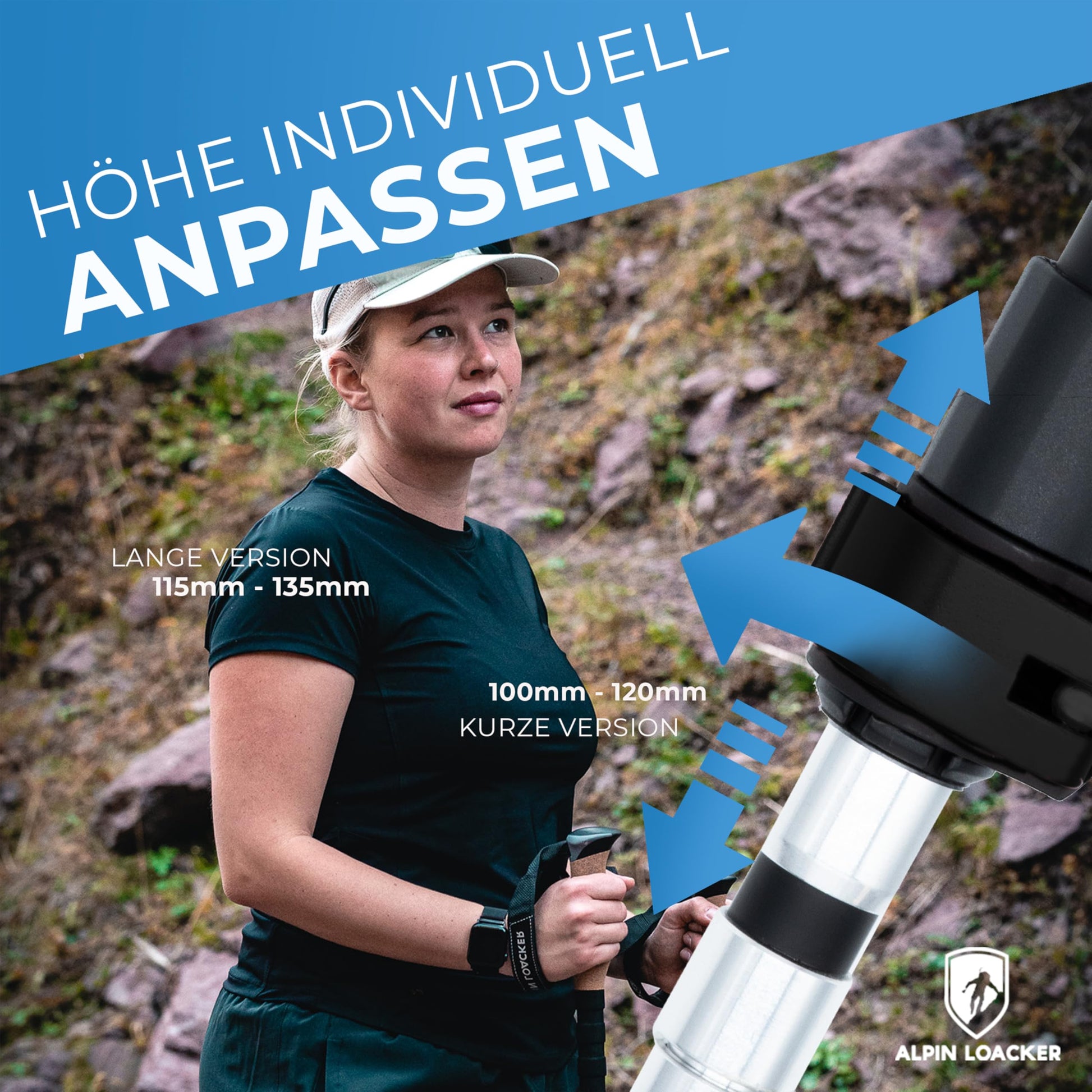 Diese Trekkingstöcke sind mit einem Verstellbereich von 100 cm bis 120 cm ideal für Personen mit einer Körpergrösse bis 165 cm geeignet. Sie lassen sich flexibel an Ihre individuelle Grösse anpassen.