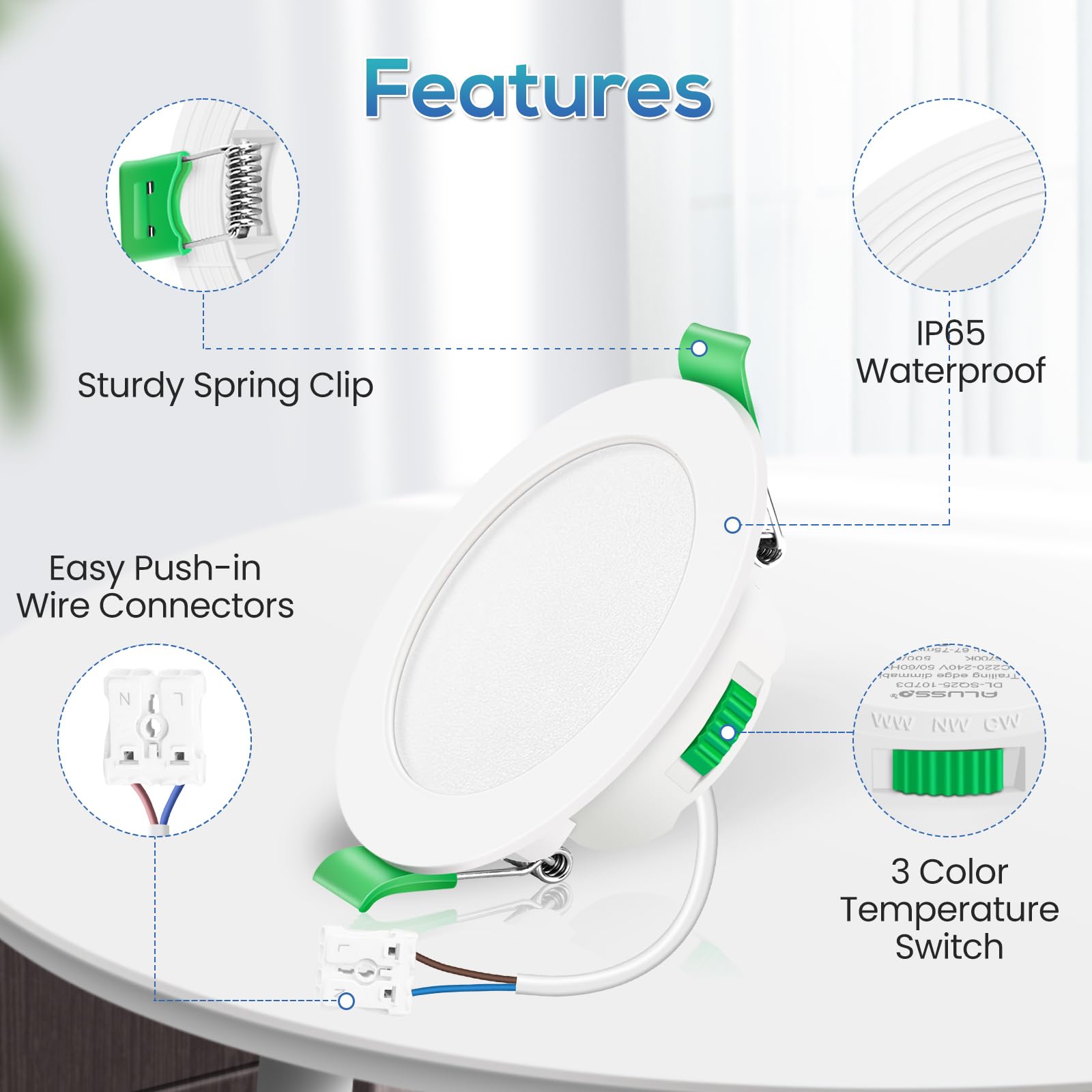 Die Installation ist sehr einfach, da kein separater Trafo benötigt wird. Die Spots werden dank des integrierten Treibers direkt an Ihr 230V-Stromnetz angeschlossen. Die geringe Einbautiefe von 29 mm und der flexible Lochausschnitt (67-75 mm) erleichtern die Montage zusätzlich.