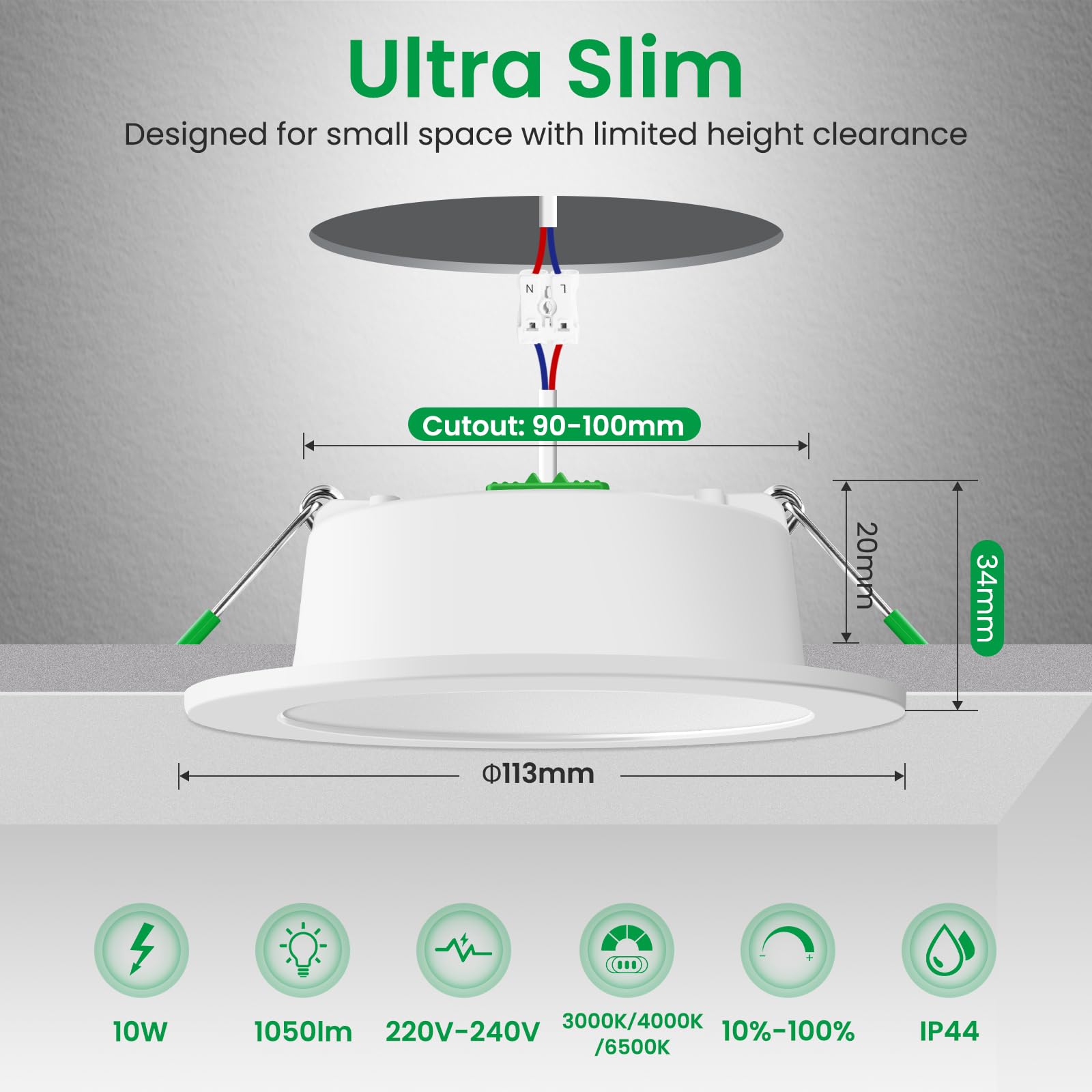 - Extrem flaches Design: Mit einer minimalen Einbautiefe von nur 34 mm fügen sich die Leuchten nahtlos und dezent in jede Decke ein.