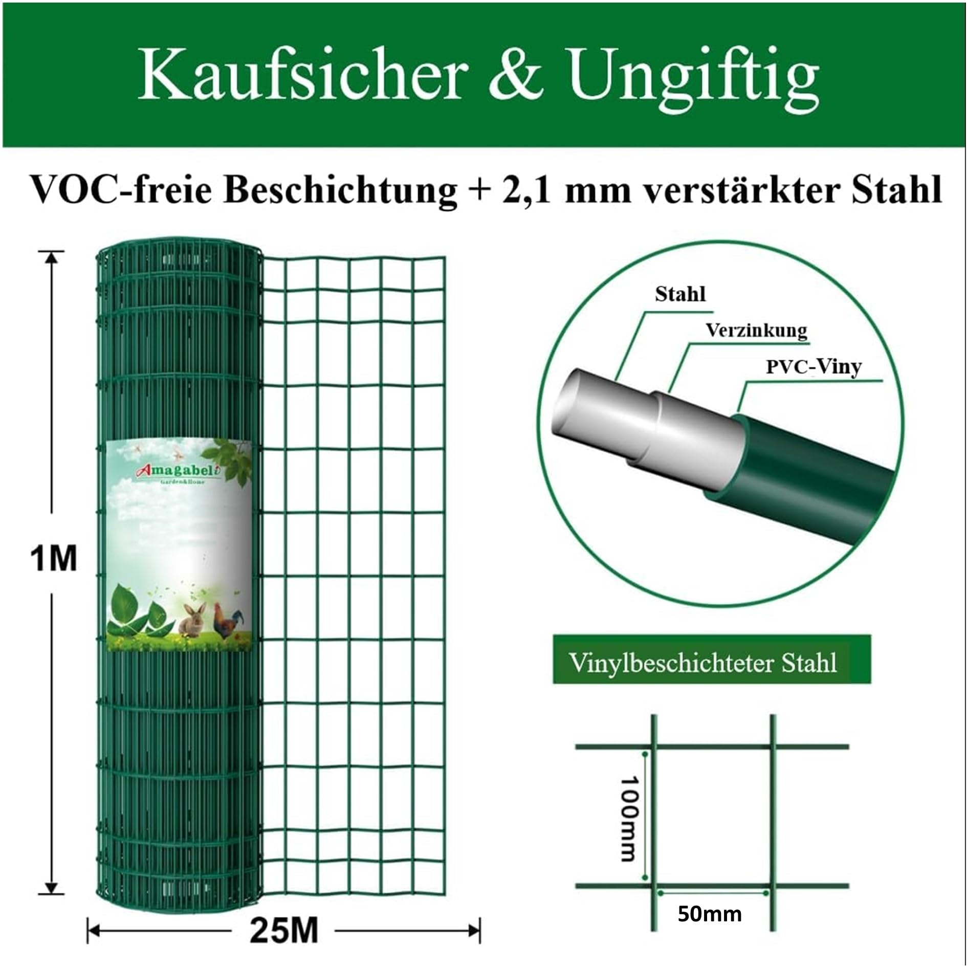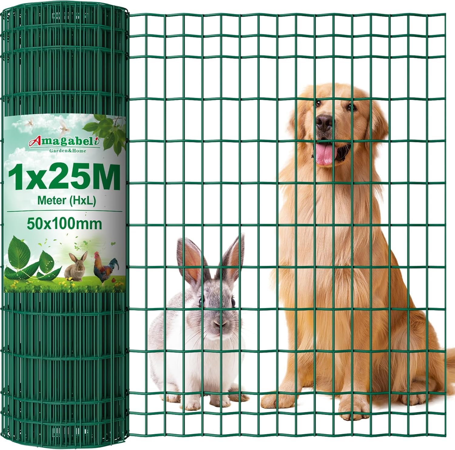 Amagabeli PVC-Gartenzaun grün - 1x25m, Masche 100x50mm