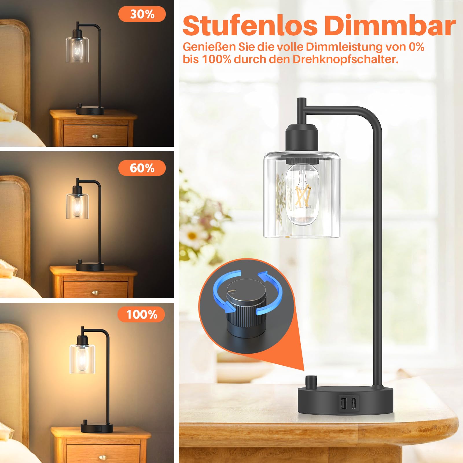 AmazeFun Dimmbare Nachttischlampe 2er Set mit USB-Ladefunktion