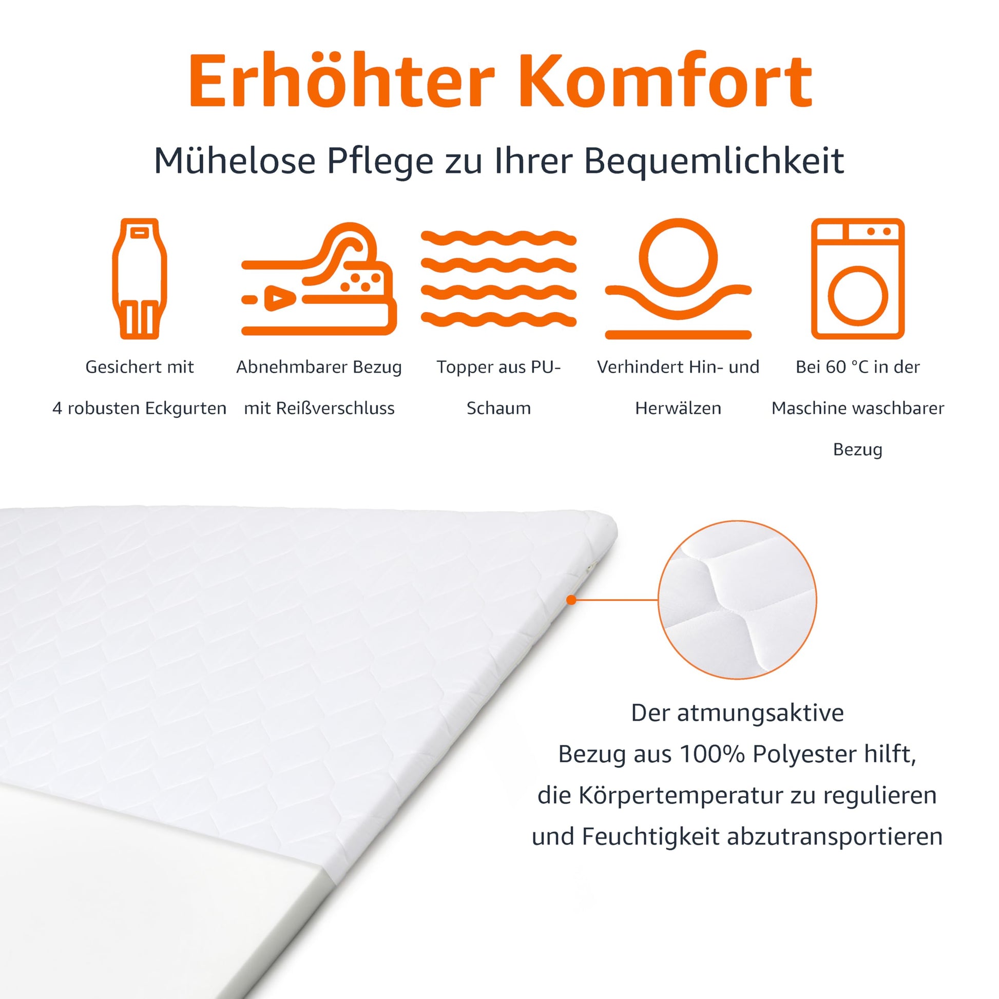 Amazon Basics Komfort Schaumstoff Matratzenauflage – 6cm 140x200cm Weiss