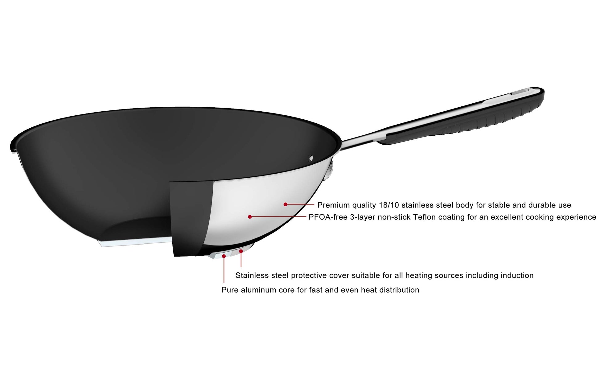 - Hochwertige Materialien: Gefertigt aus robustem, rostfreiem Edelstahl mit einem eleganten Hochglanz-Finish und einem Aluminiumkern für eine schnelle, gleichmässige Wärmeverteilung.