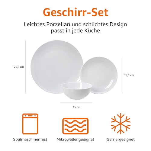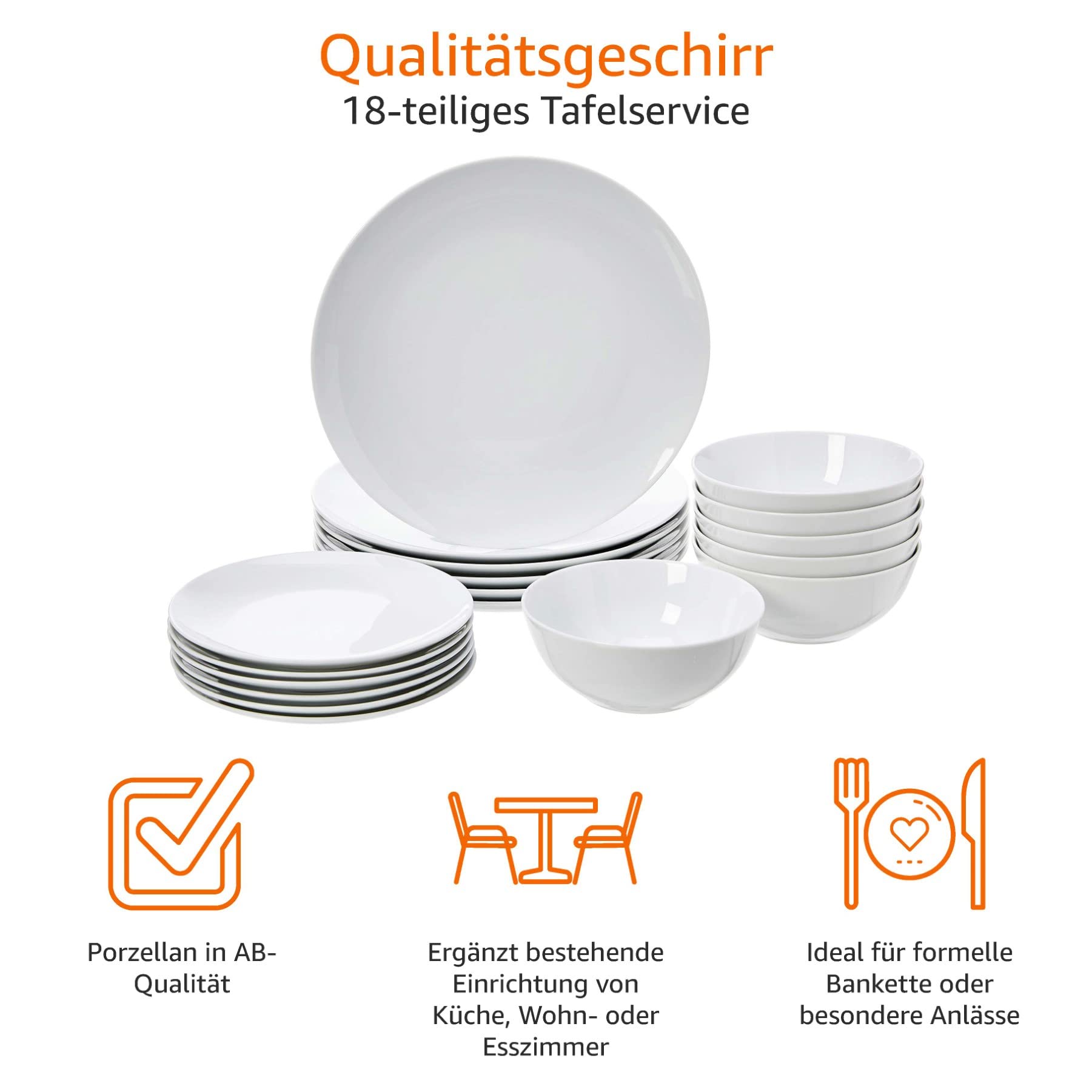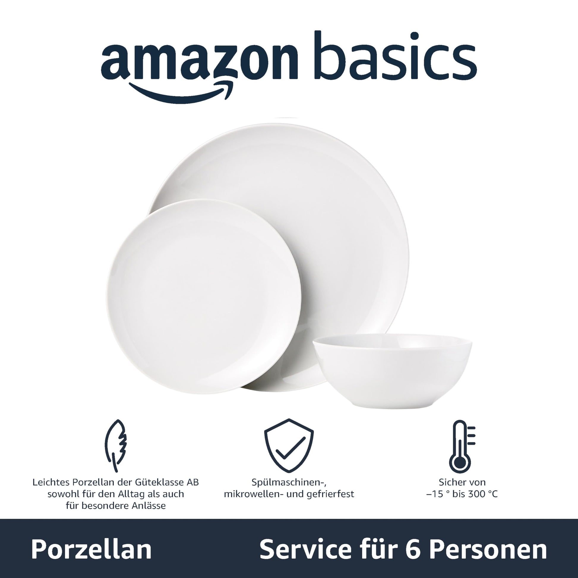 Amazon Basics Geschirrservice 18tlg. 6 Personen - Weiss Porzellan Coupe