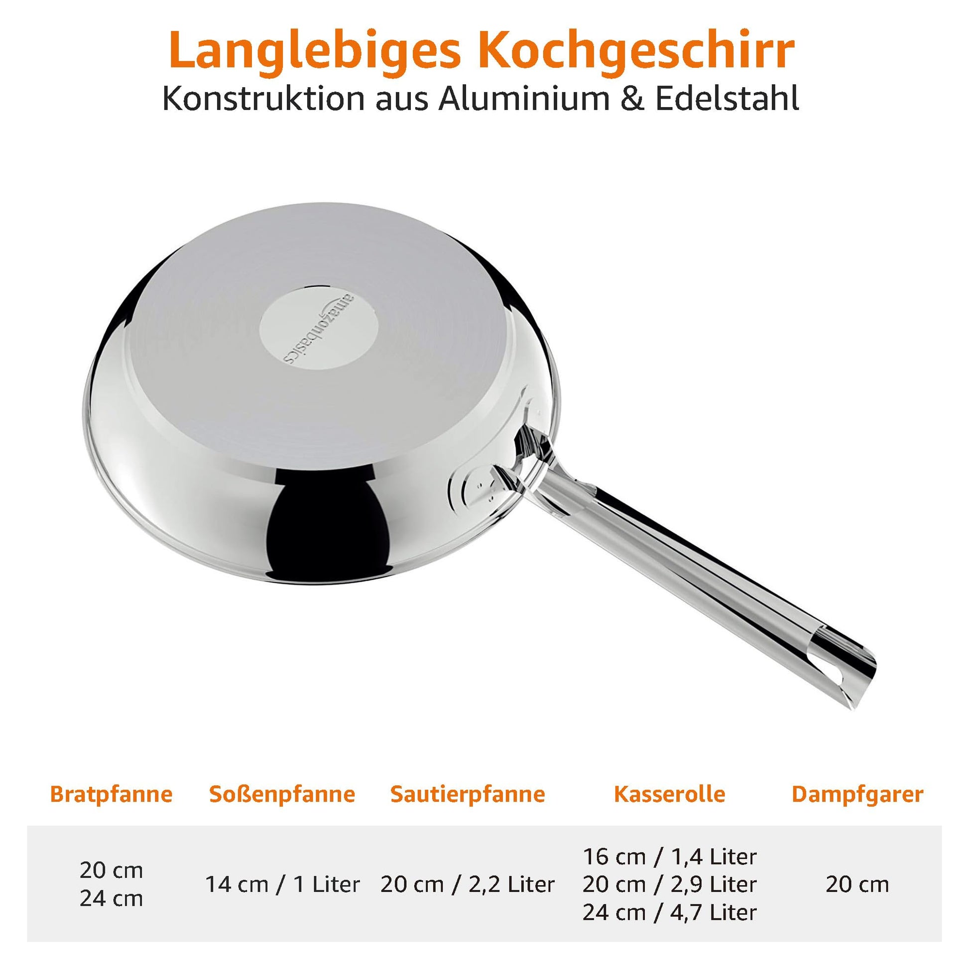 Statten Sie Ihre Küche mit diesem umfassenden, elfteiligen Kochgeschirr-Set von Amazon Basics aus. Gefertigt aus langlebigem Edelstahl, bietet es die ideale Grundlage für eine Vielzahl von Gerichten, vom schnellen Anbraten bis zum schonenden Dämpfen.