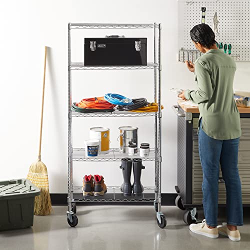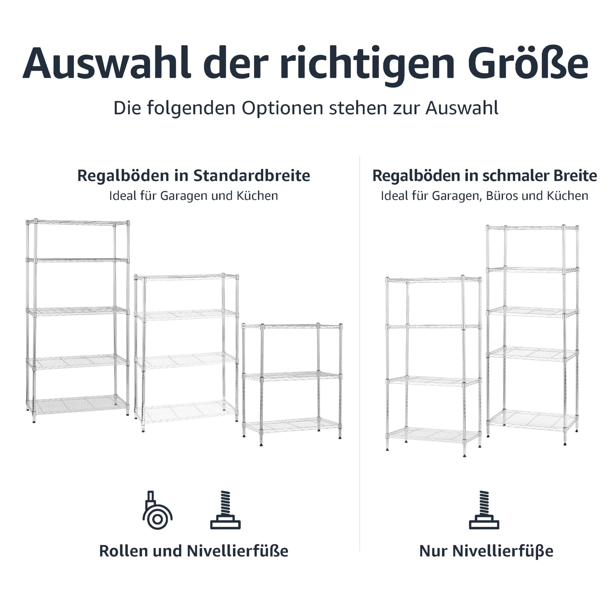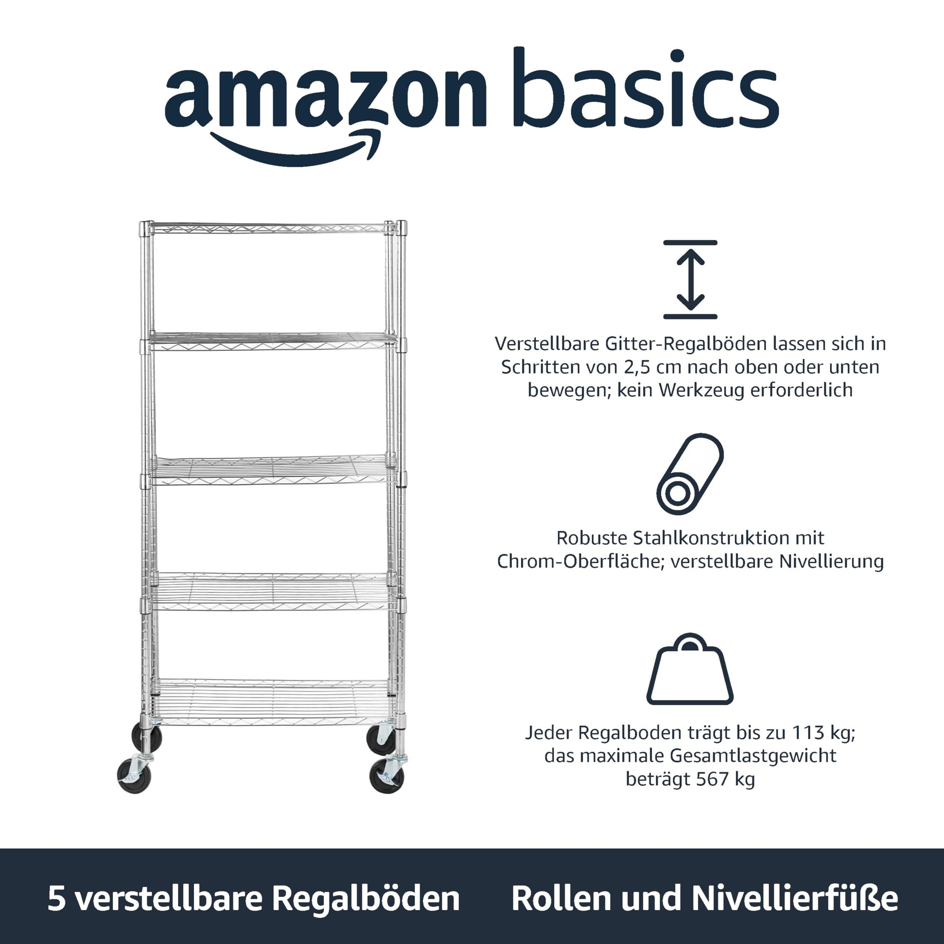 Amazon Basics Lagereinheit Schwerlast-Rollregal 5 Böden - Chrom